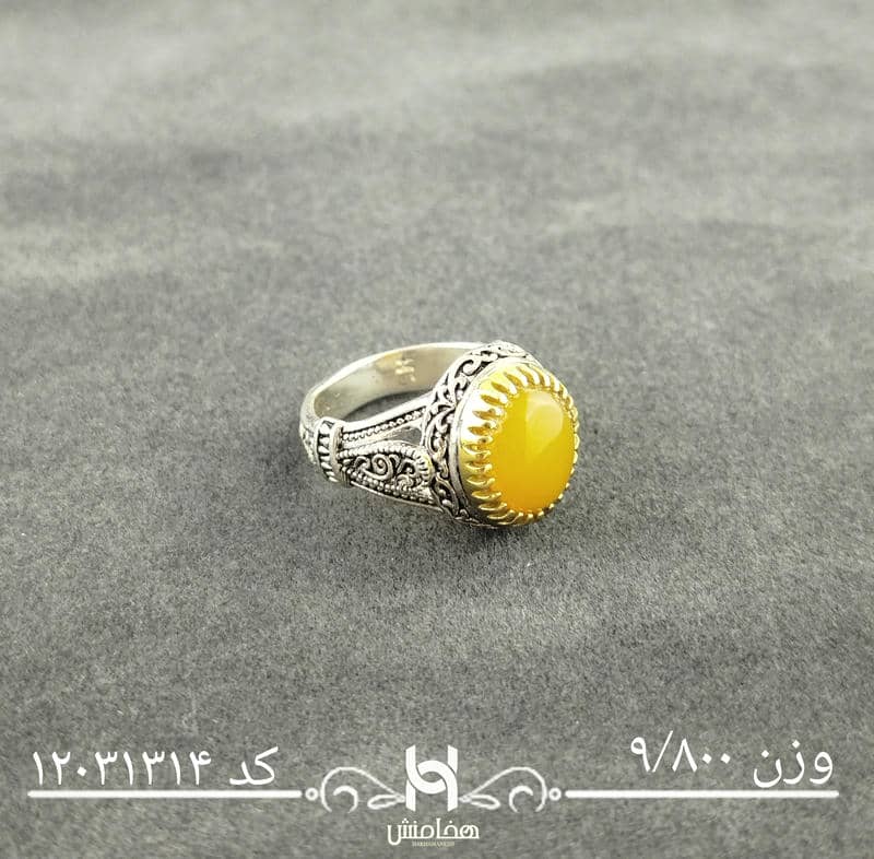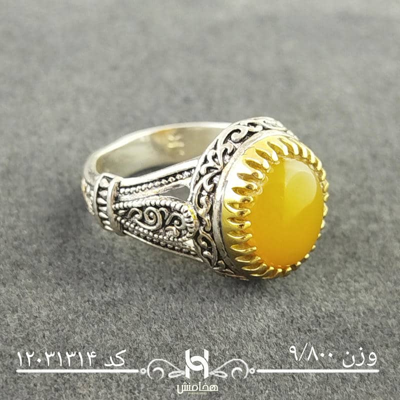 انگشتر نقره مردانه دورنگ عقیق زرد با سنگ طبیعی اصل و نقره عیار استاندارد 925 تولید شرکت هخامنش میباشد.