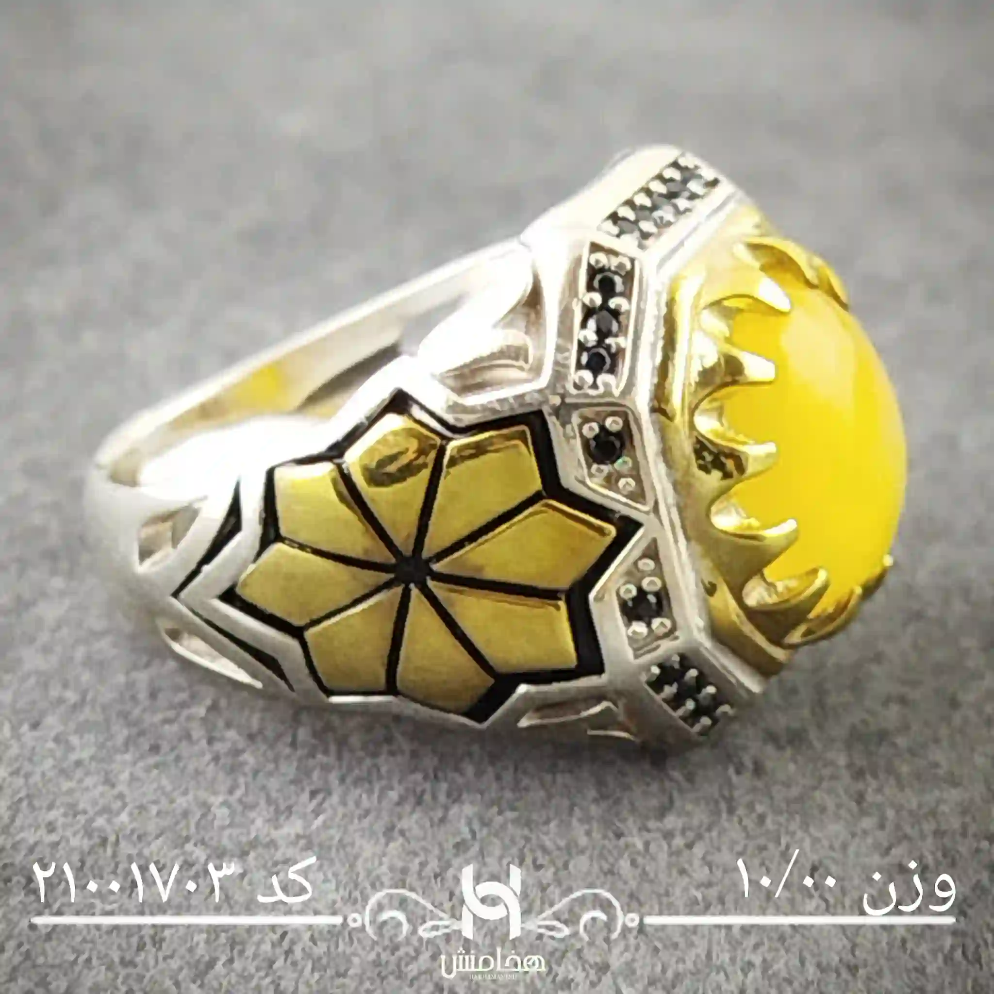 انگشتر نقره مردانه عقیق زرد با سنگ طبیعی اصل و نقره عیار استاندارد 925 تولید شرکت هخامنش میباشد.