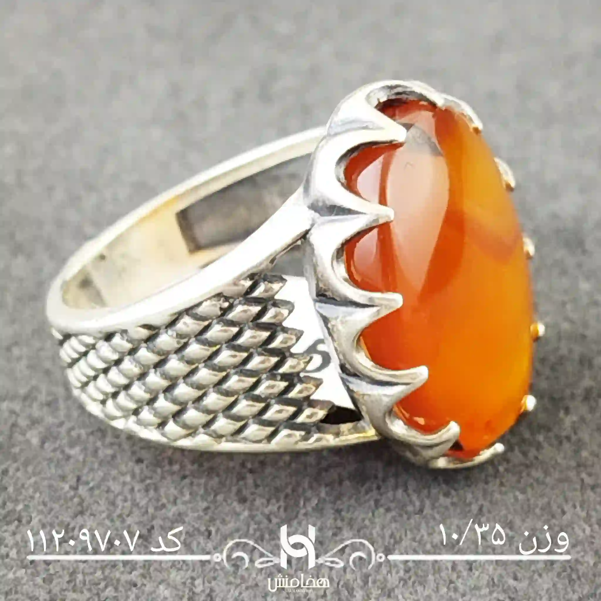 انگشتر نقره مردانه دورنگ عقیق سرخ با سنگ طبیعی اصل و نقره عیار استاندارد 925 تولید شرکت هخامنش میباشد.