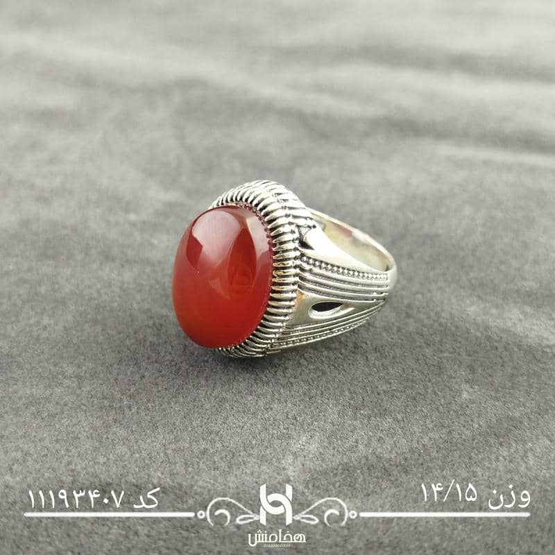 انگشتر نقره مردانه عقیق سرخ با سنگ طبیعی اصل و نقره عیار استاندارد 925 تولید شرکت هخامنش میباشد.