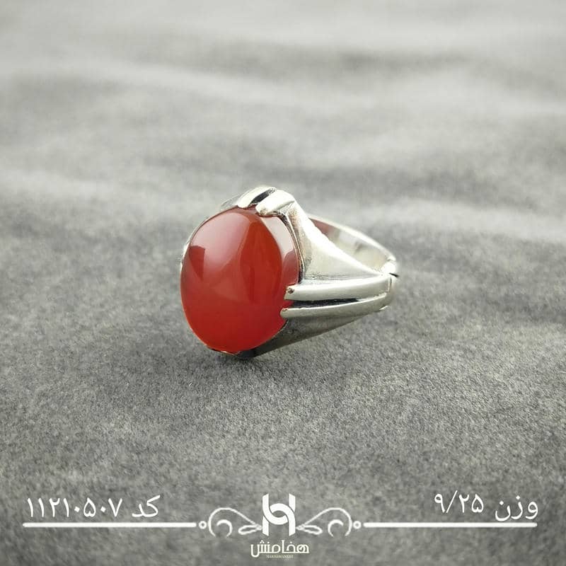 انگشتر نقره مردانه عقیق سرخ با سنگ طبیعی اصل و نقره عیار استاندارد 925 تولید شرکت هخامنش میباشد.