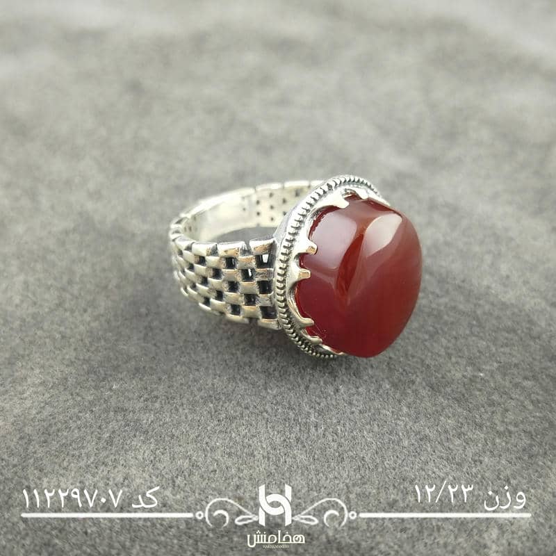 انگشتر نقره مردانه عقیق سرخ با سنگ طبیعی اصل و نقره عیار استاندارد 925 تولید شرکت هخامنش میباشد.