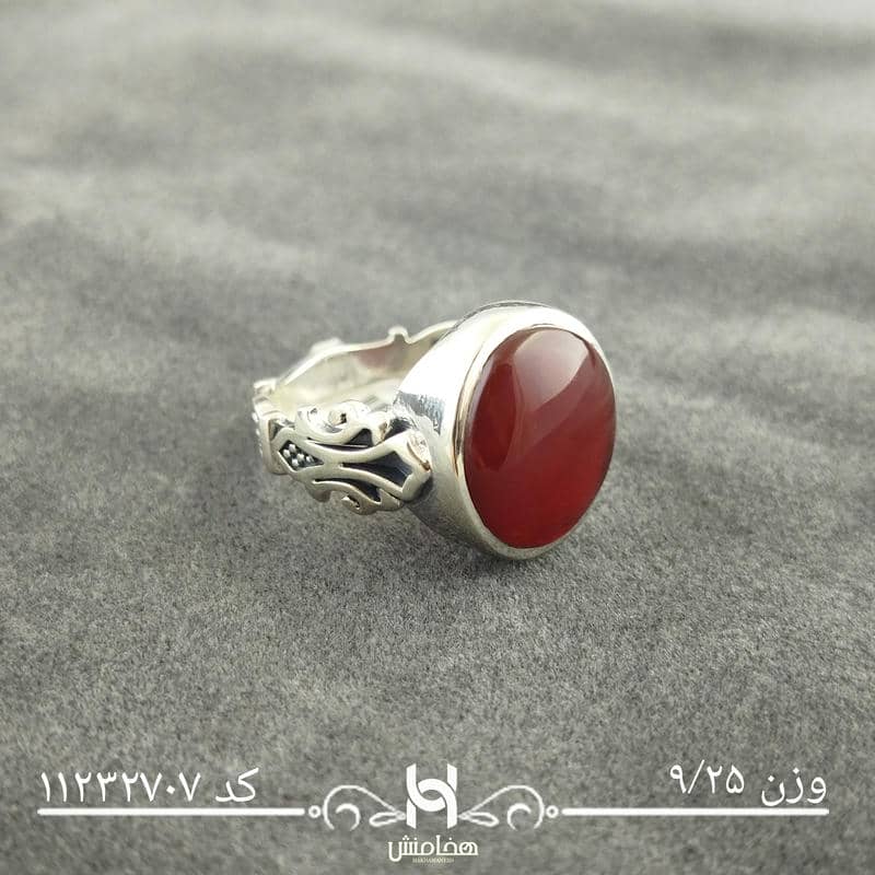 انگشتر نقره مردانه عقیق سرخ با سنگ طبیعی اصل و نقره عیار استاندارد 925 تولید شرکت هخامنش میباشد.
