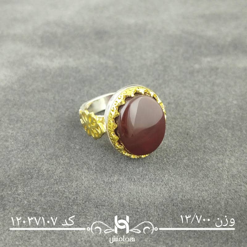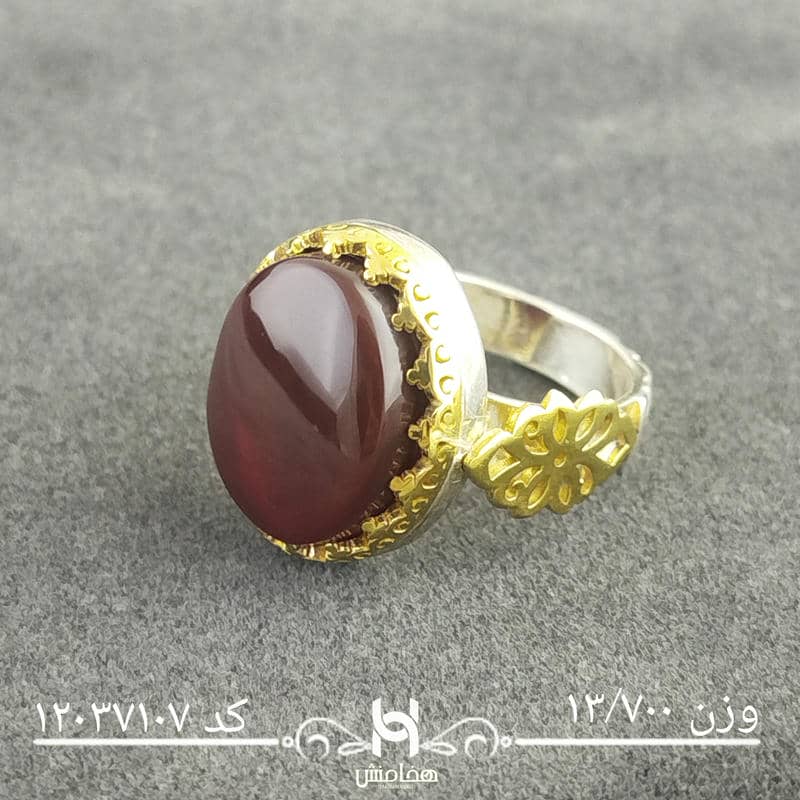 انگشتر نقره مردانه دورنگ عقیق سرخ با سنگ طبیعی اصل و نقره عیار استاندارد 925 تولید شرکت هخامنش میباشد.