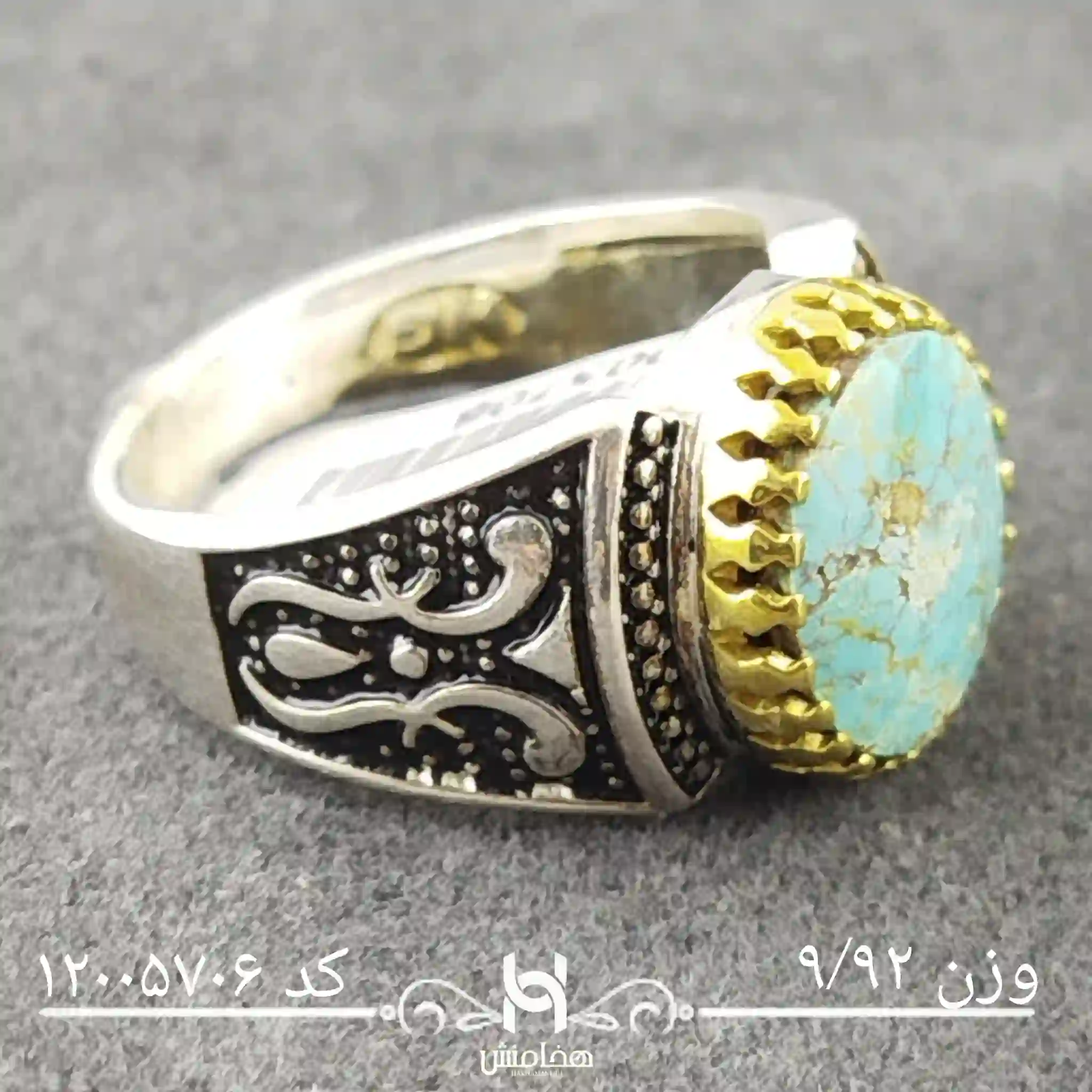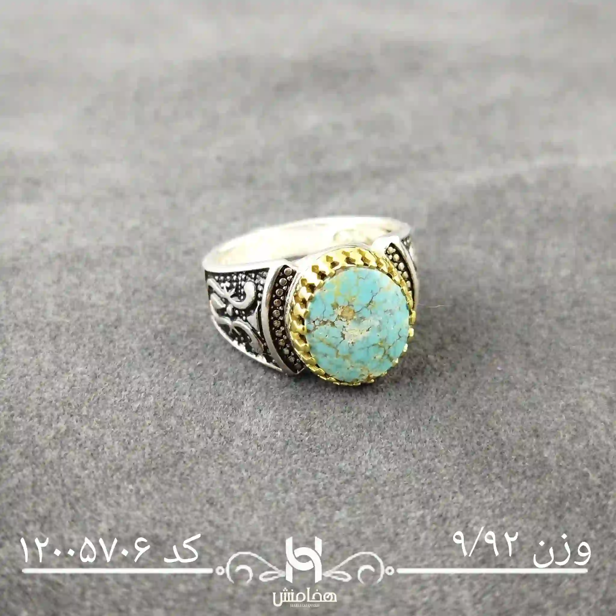 انگشتر نقره مردانه فیروزه دورنگ کد 12005706