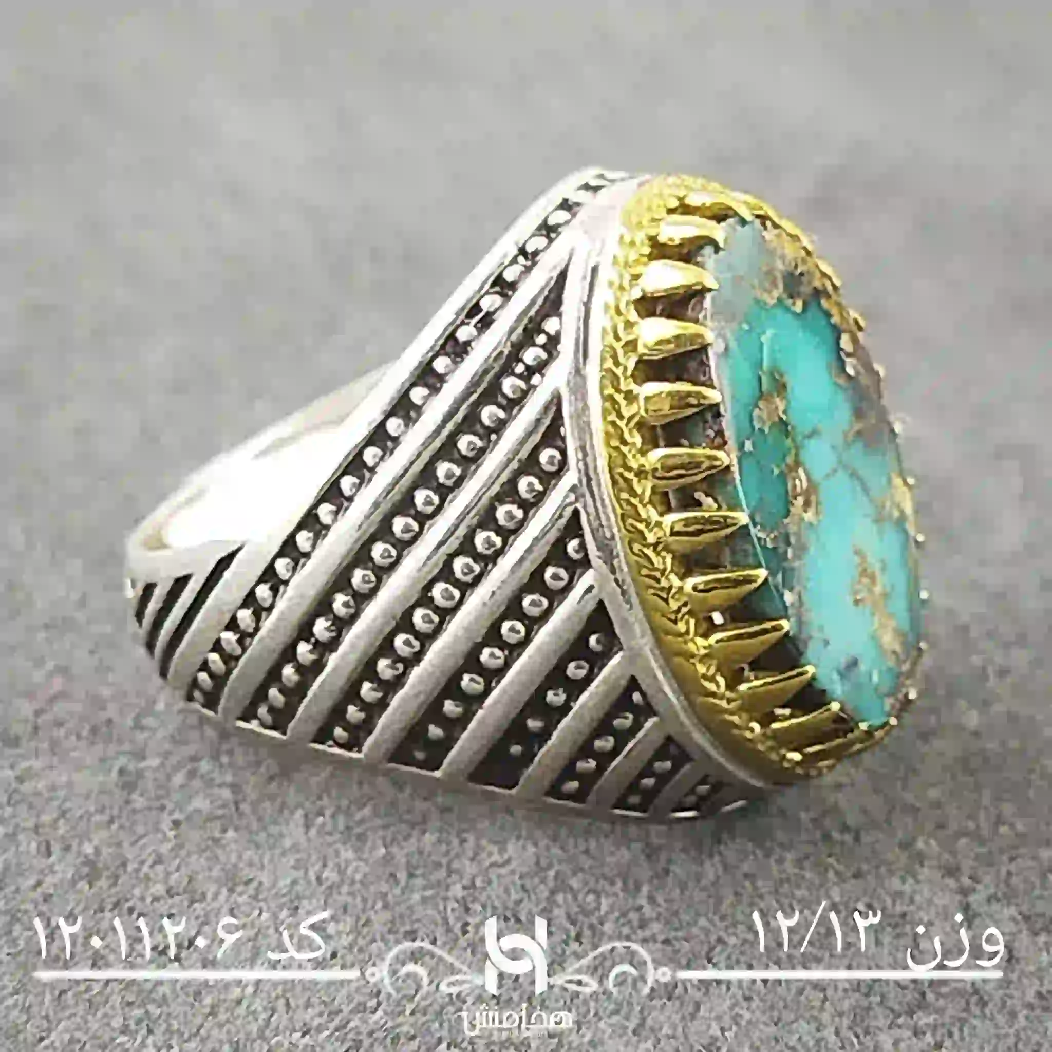 انگشتر نقره مردانه فیروزه دورنگ کد 12011206