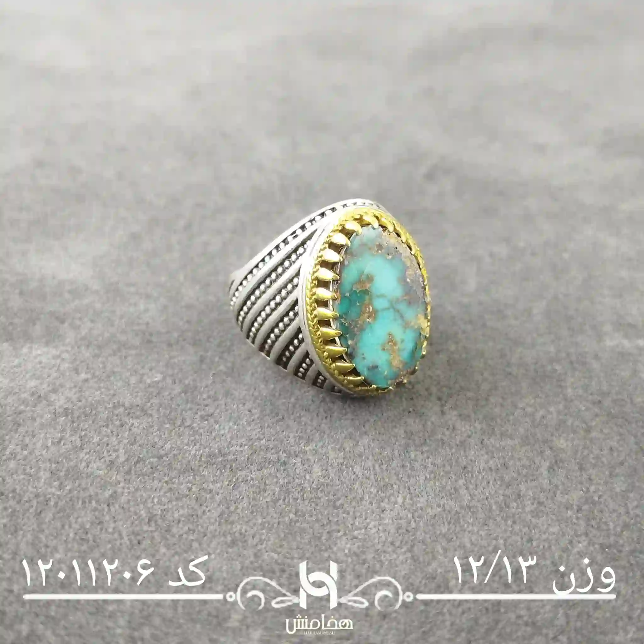 انگشتر نقره مردانه فیروزه دورنگ با سنگ طبیعی اصل و نقره عیار استاندارد 925 تولید شرکت هخامنش میباشد.