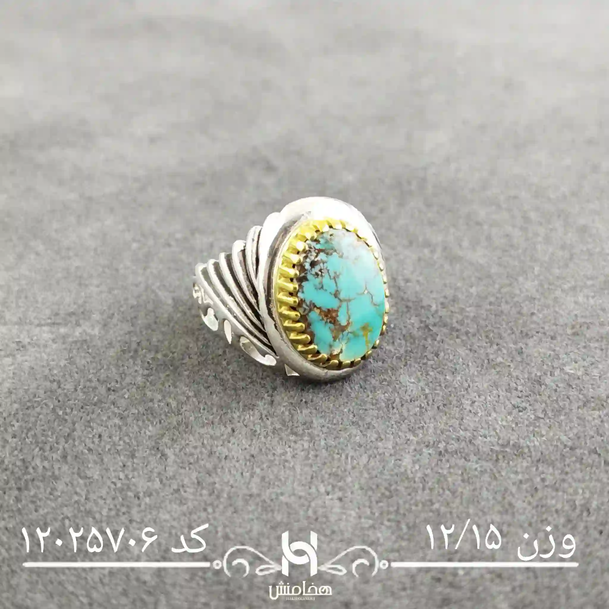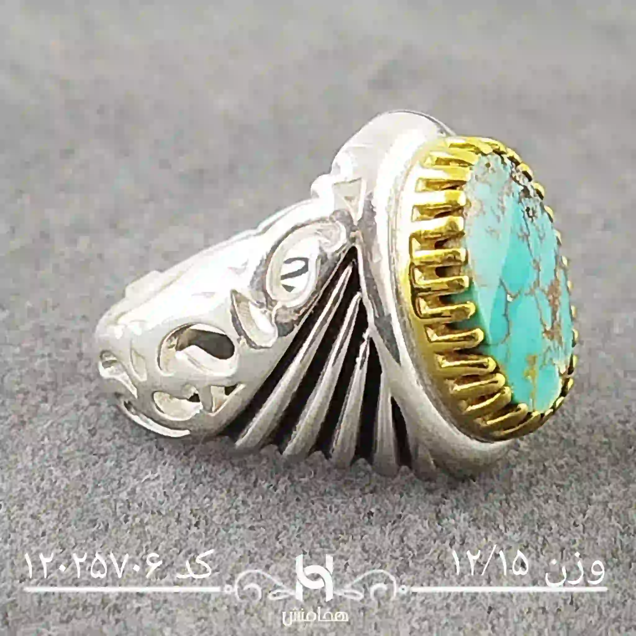 انگشتر نقره مردانه فیروزه دورنگ کد 12025706
