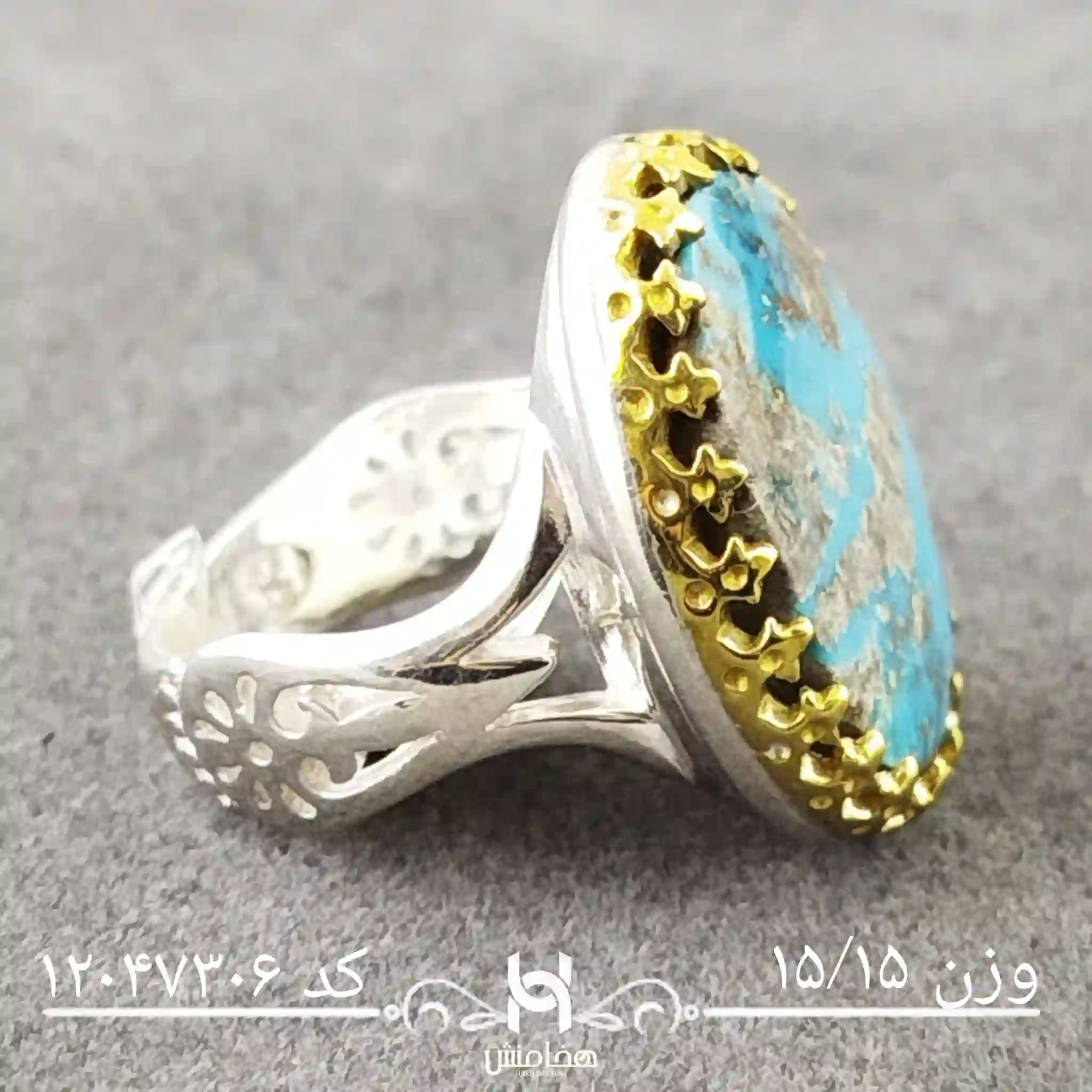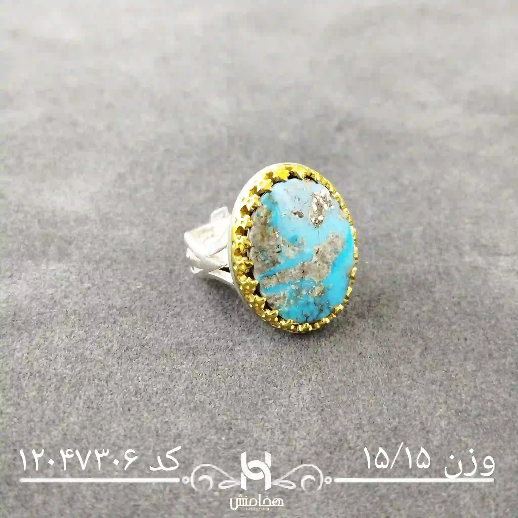 انگشتر نقره مردانه فیروزه دورنگ با سنگ طبیعی اصل و نقره عیار استاندارد 925 تولید شرکت هخامنش میباشد.