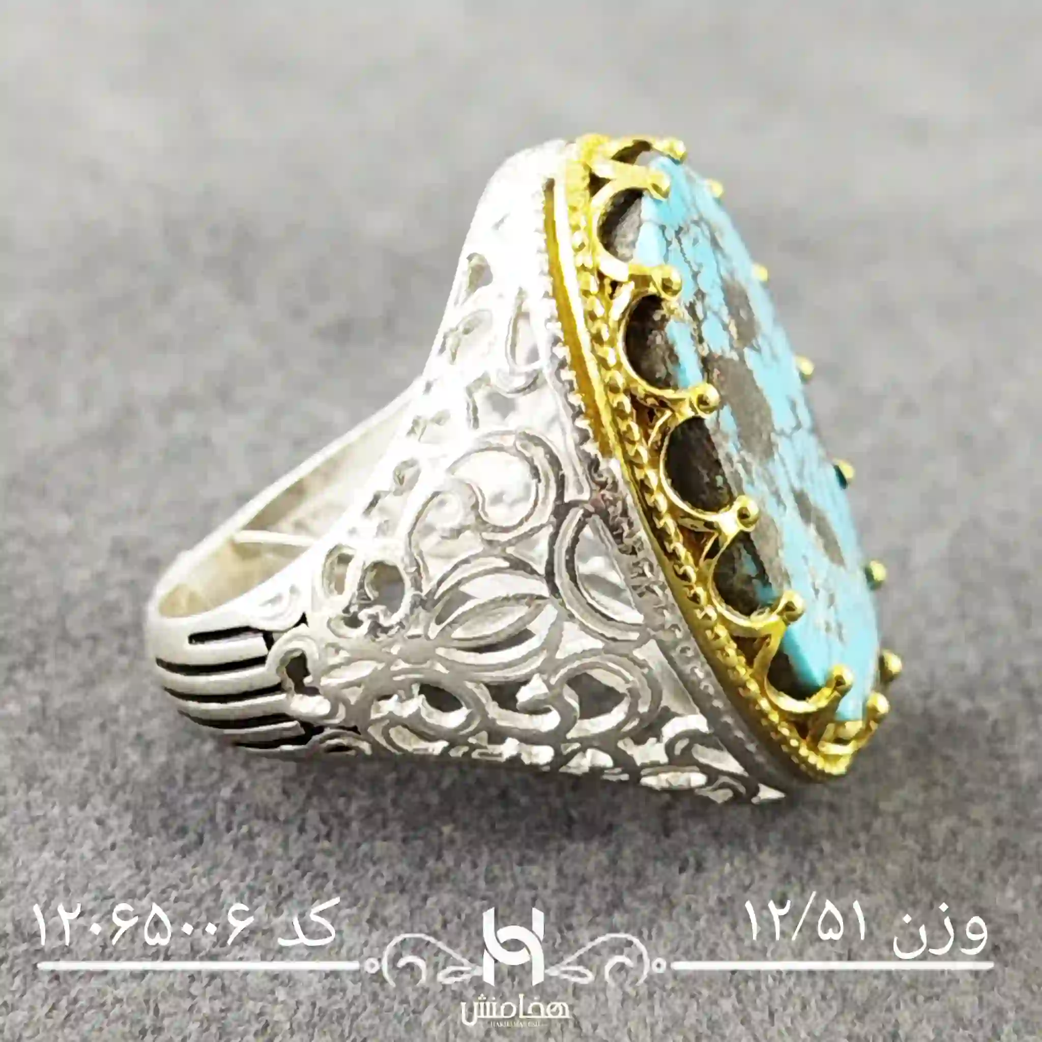 انگشتر نقره مردانه فیروزه دورنگ یک اکسسوری شیک از هخامنش برای استایل روزمره شماست.