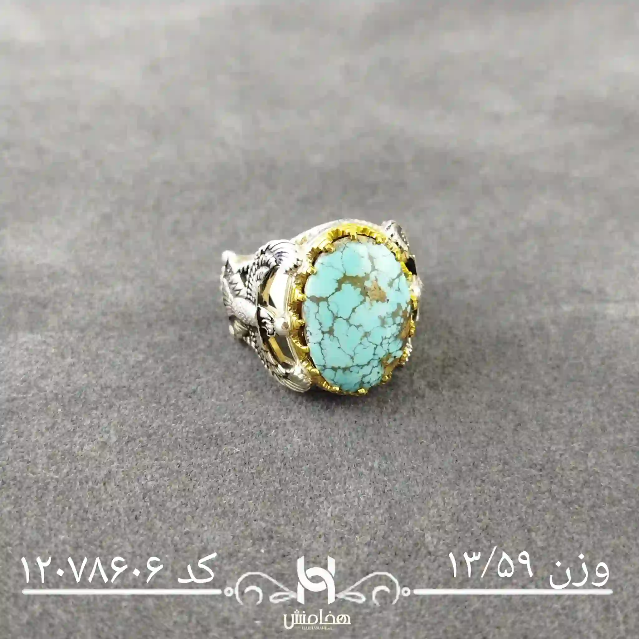 انگشتر نقره مردانه فیروزه دورنگ کد 12078606