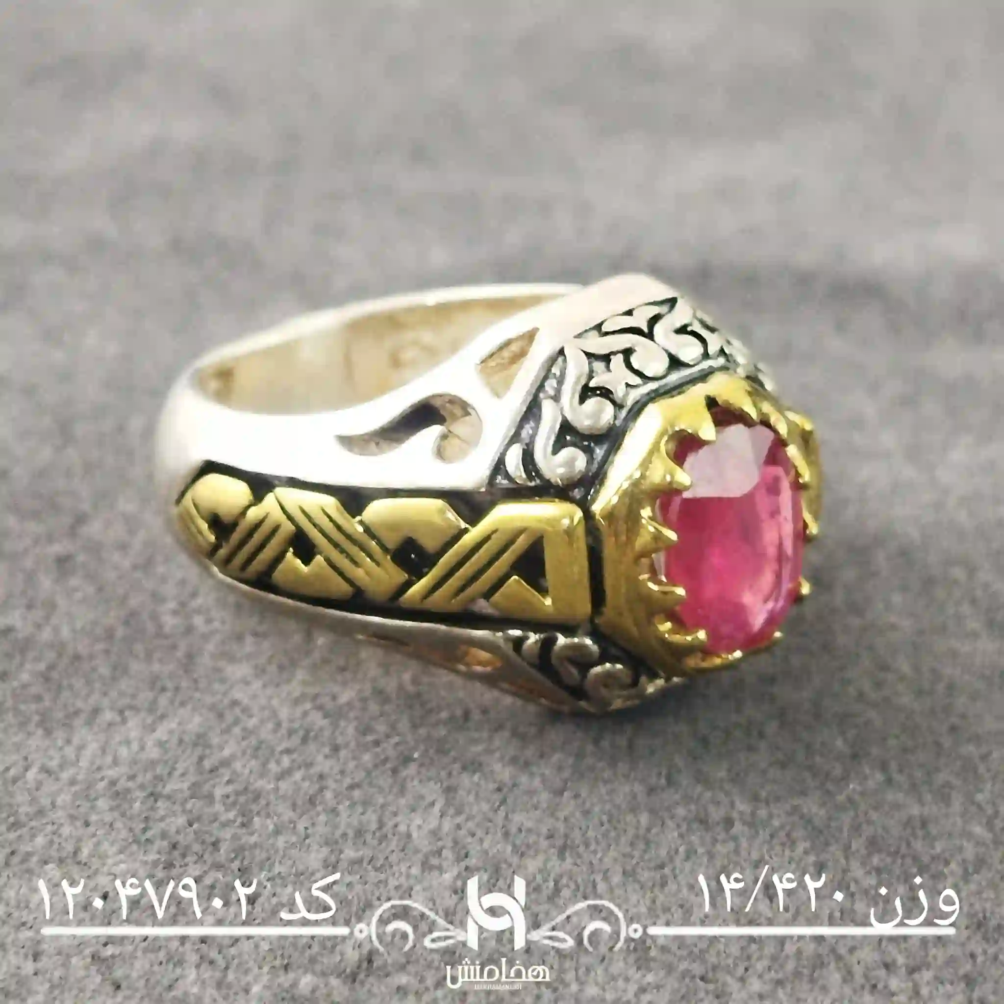 انگشتر نقره مردانه یاقوت سرخ دورنگ رویال کد 12047902