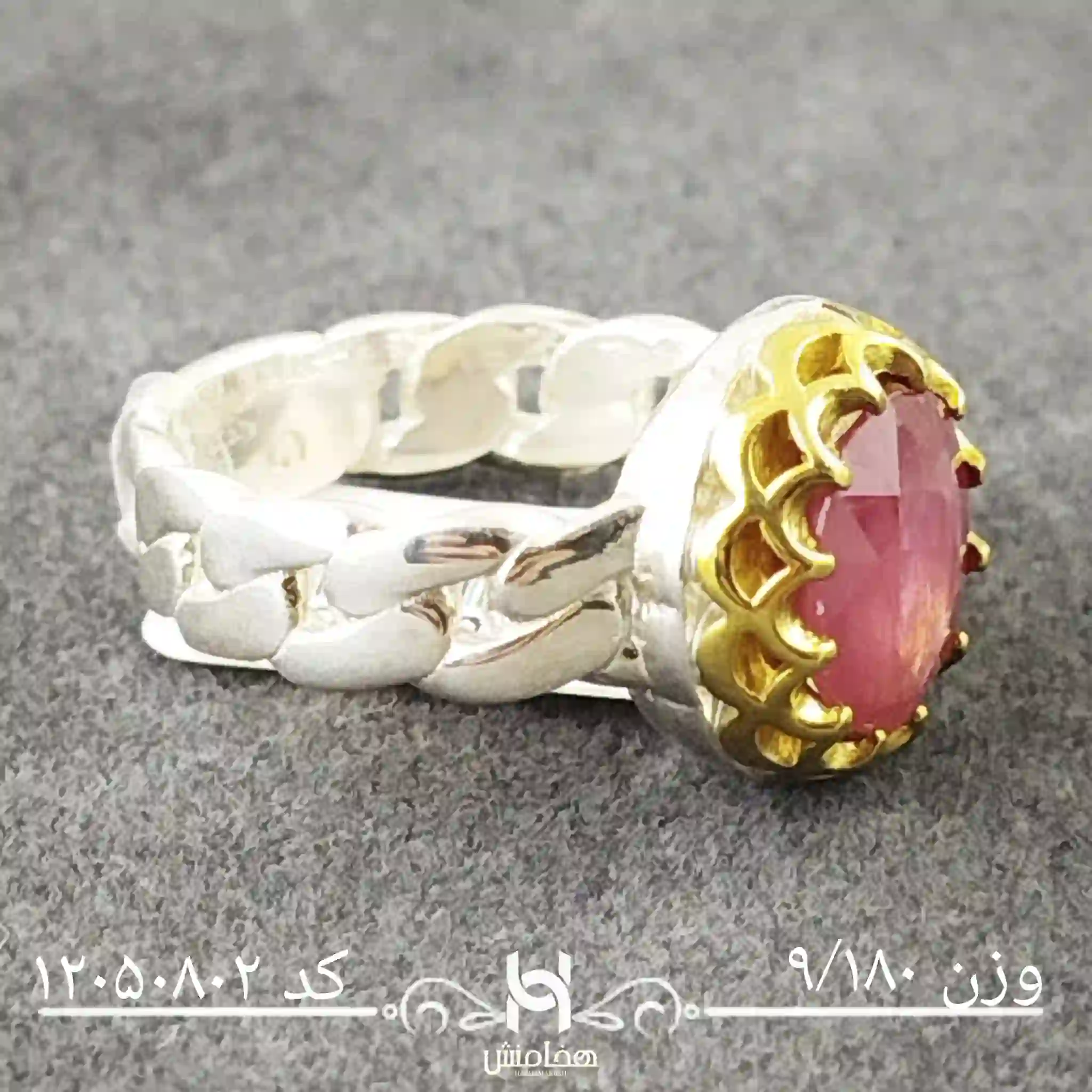 انگشتر نقره مردانه یاقوت سرخ دورنگ رویال با نقره عیار 925 شرکت هخامنش با سنگ طبیعی یاقوت سرخ زیبا و چشم نواز بوده و توجه هر بیننده ای را جلب میکند.