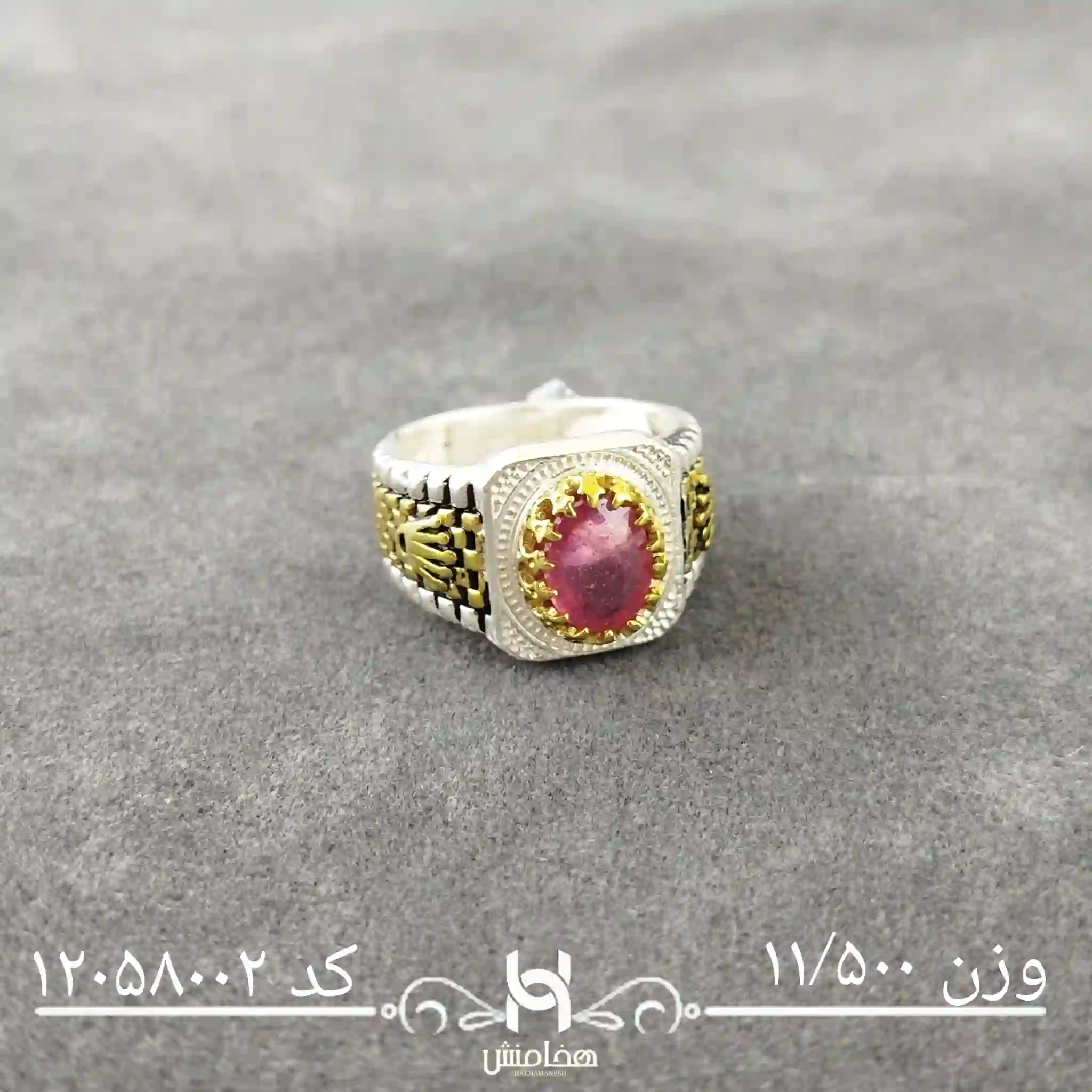 انگشتر نقره مردانه یاقوت سرخ رویال دورنگ کد 12058002