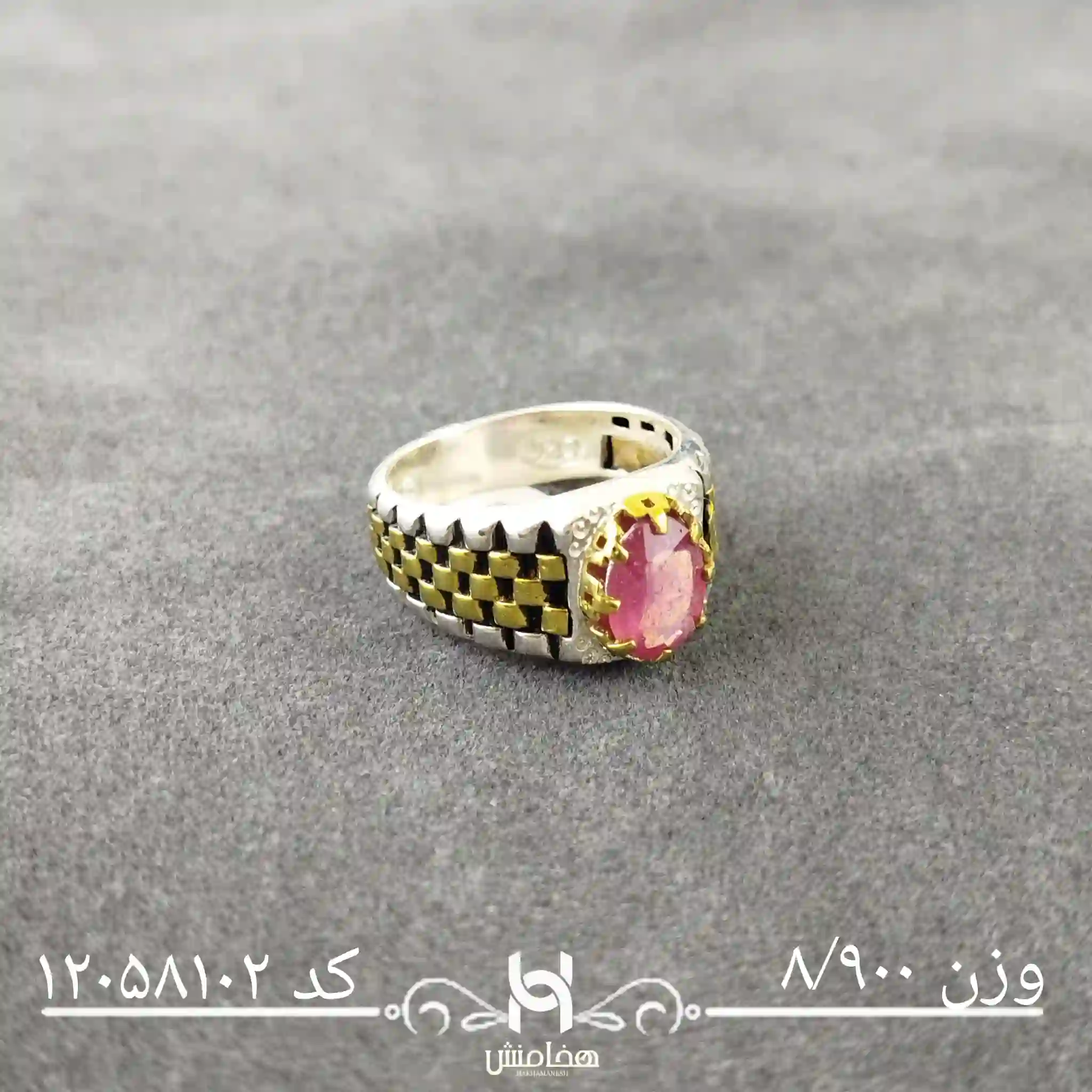 انگشتر نقره مردانه یاقوت سرخ رویال دورنگ کد 12058102