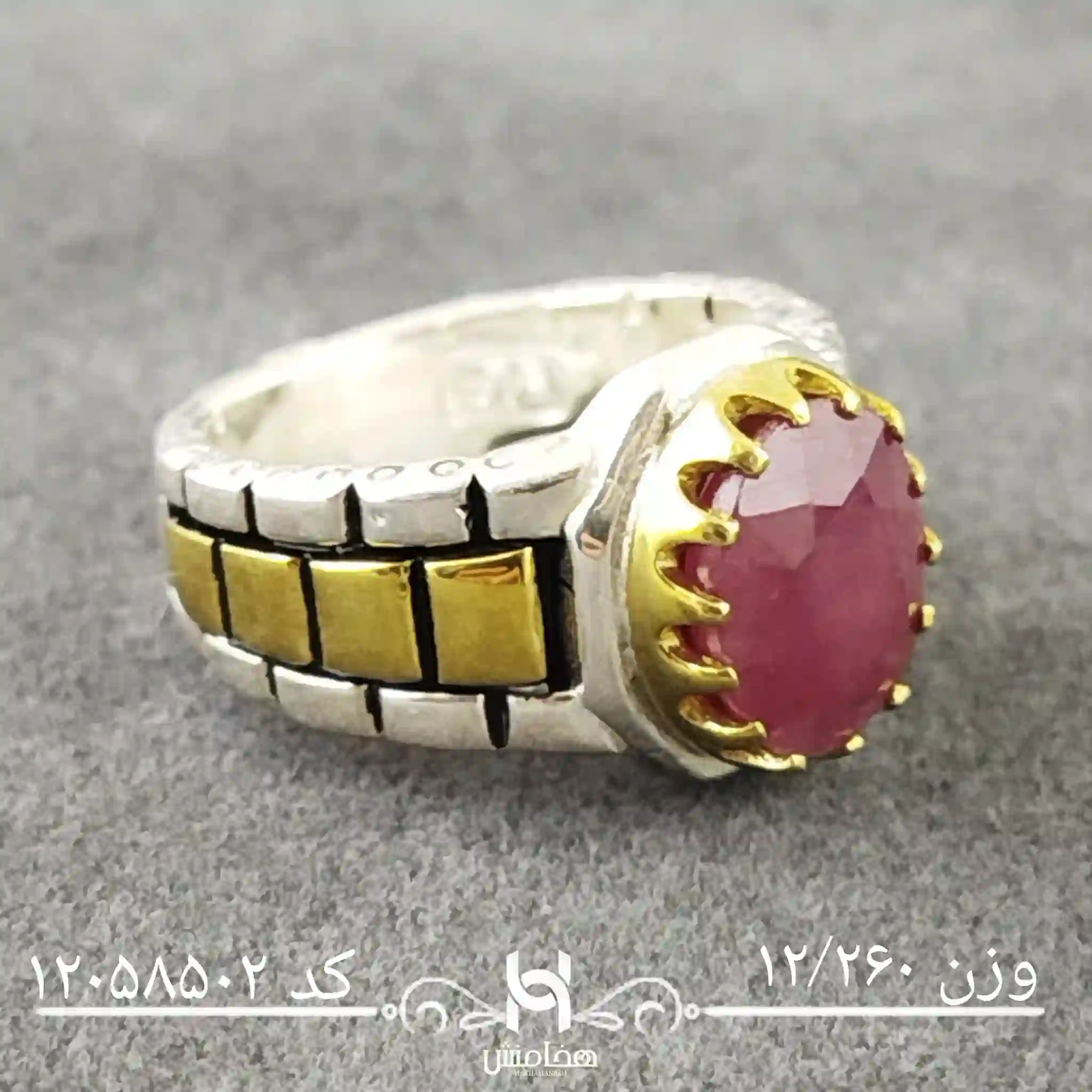 انگشتر نقره مردانه یاقوت سرخ رویال دورنگ کد 12058502