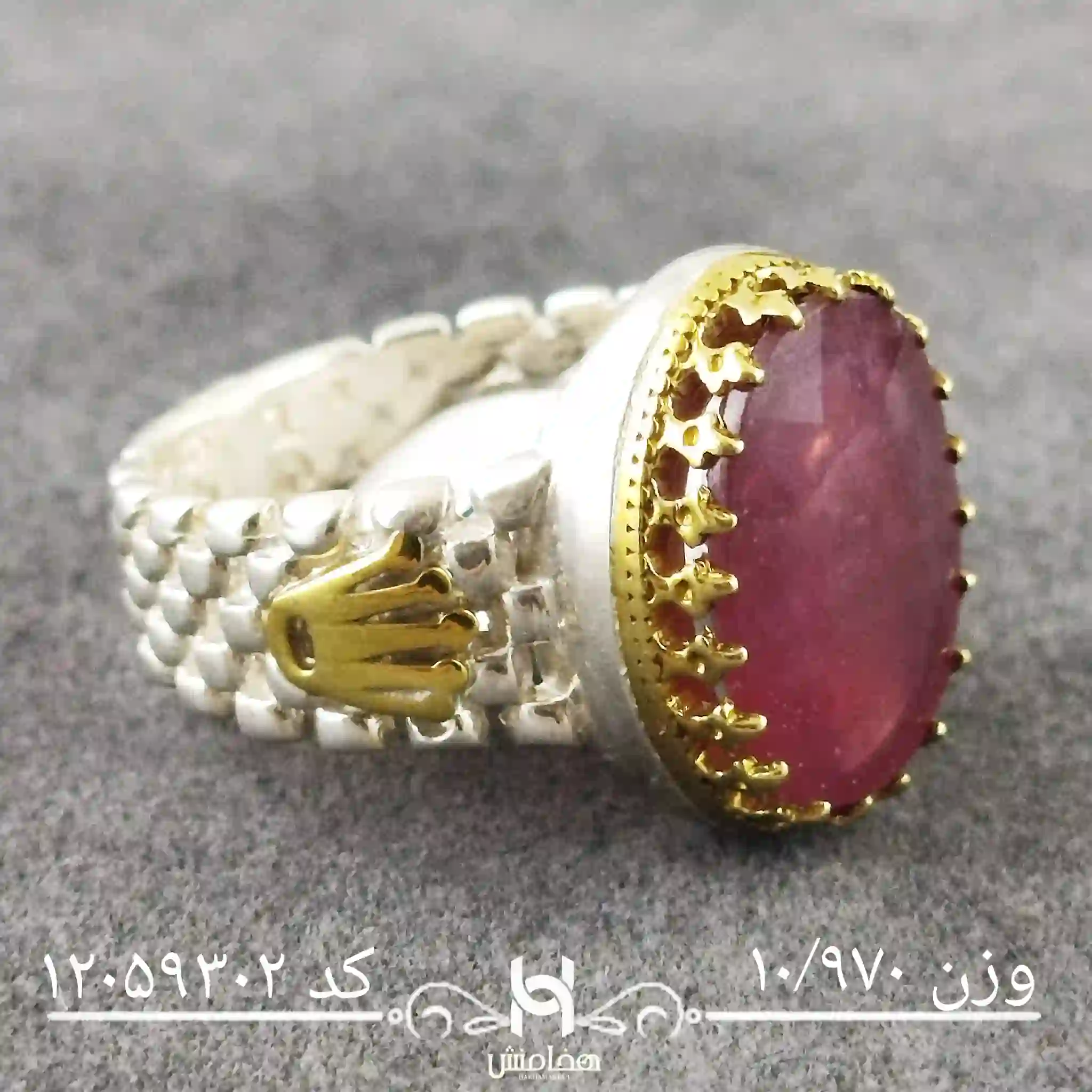 انگشتر نقره مردانه یاقوت سرخ رویال دورنگ کد 12059302