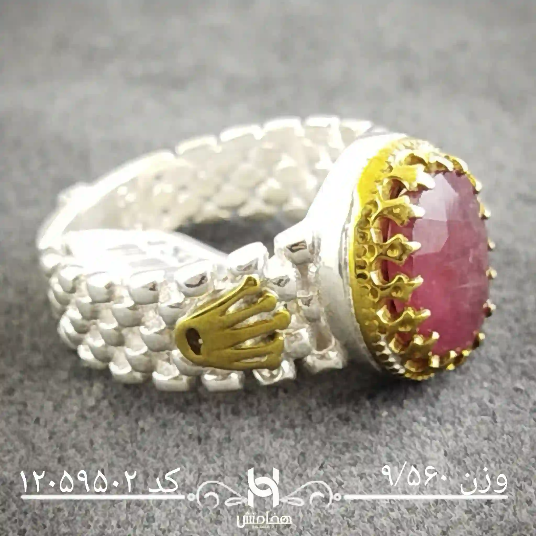 انگشتر نقره مردانه یاقوت سرخ رویال دورنگ کد 12059502