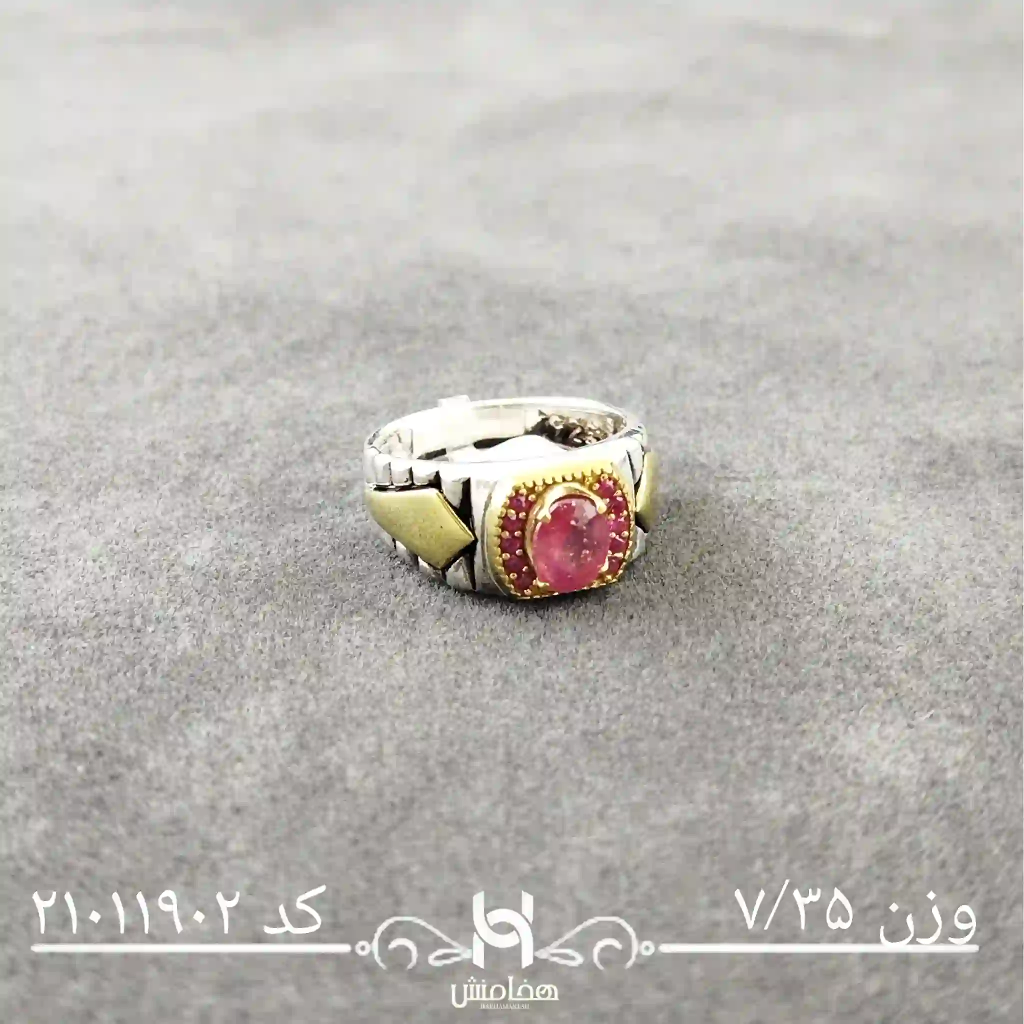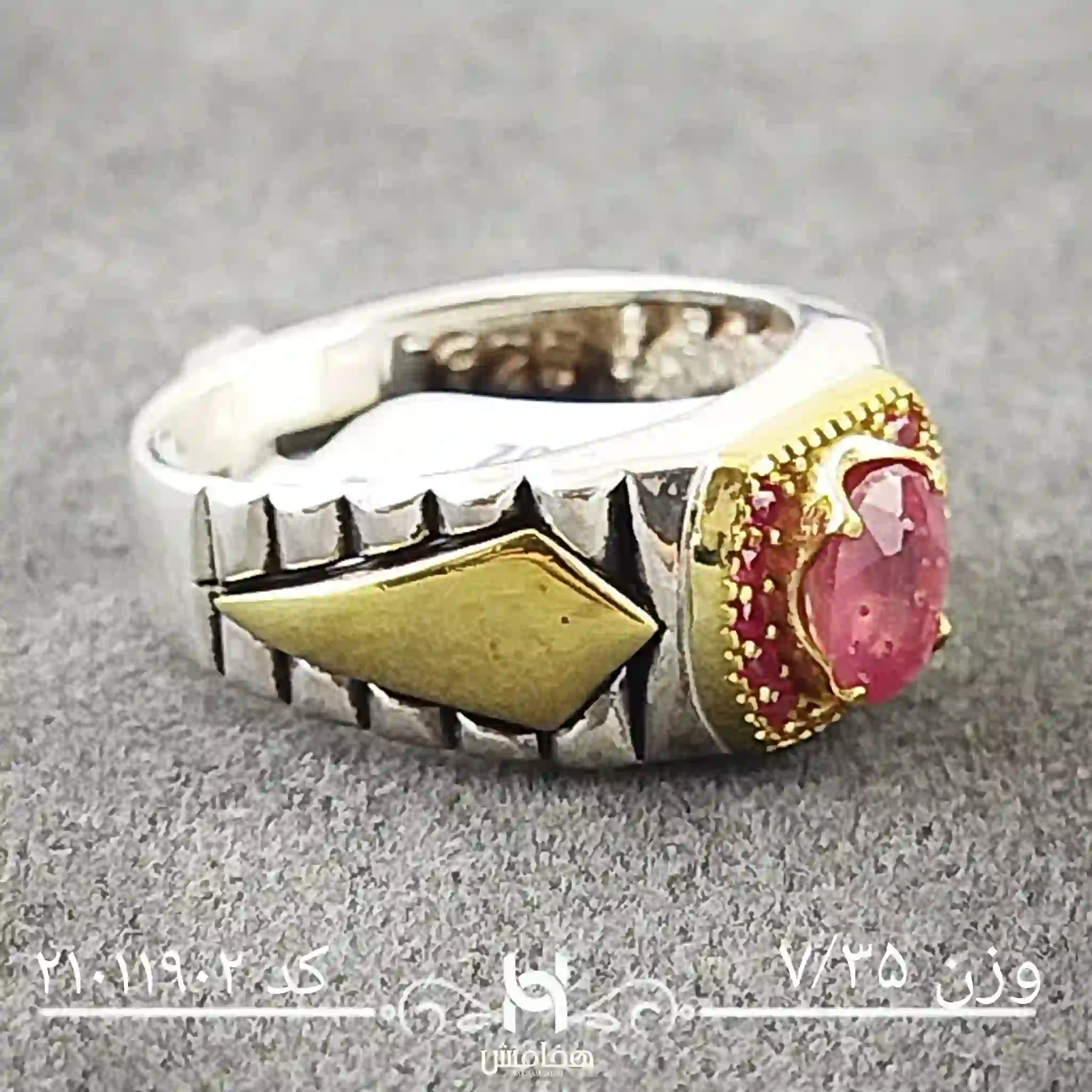 انگشتر نقره مردانه یاقوت سرخ رویال دورنگ کد 21011902