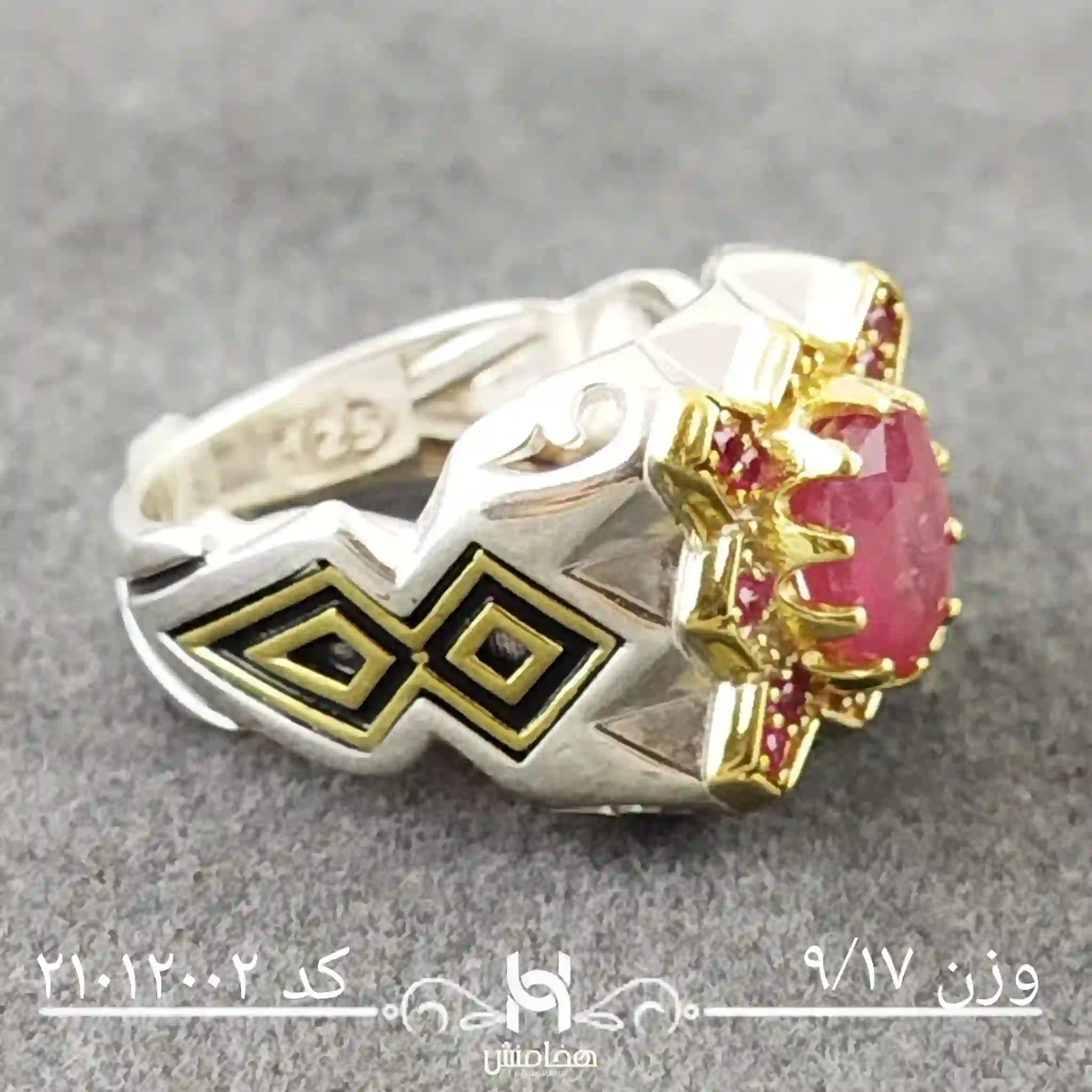 انگشتر نقره مردانه یاقوت سرخ رویال دورنگ کد 21012002