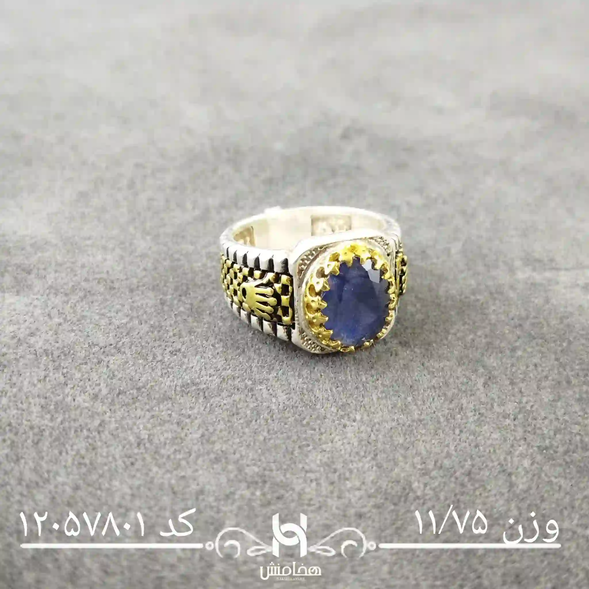 انگشتر نقره مردانه یاقوت کبود رویال دورنگ کد 12057801