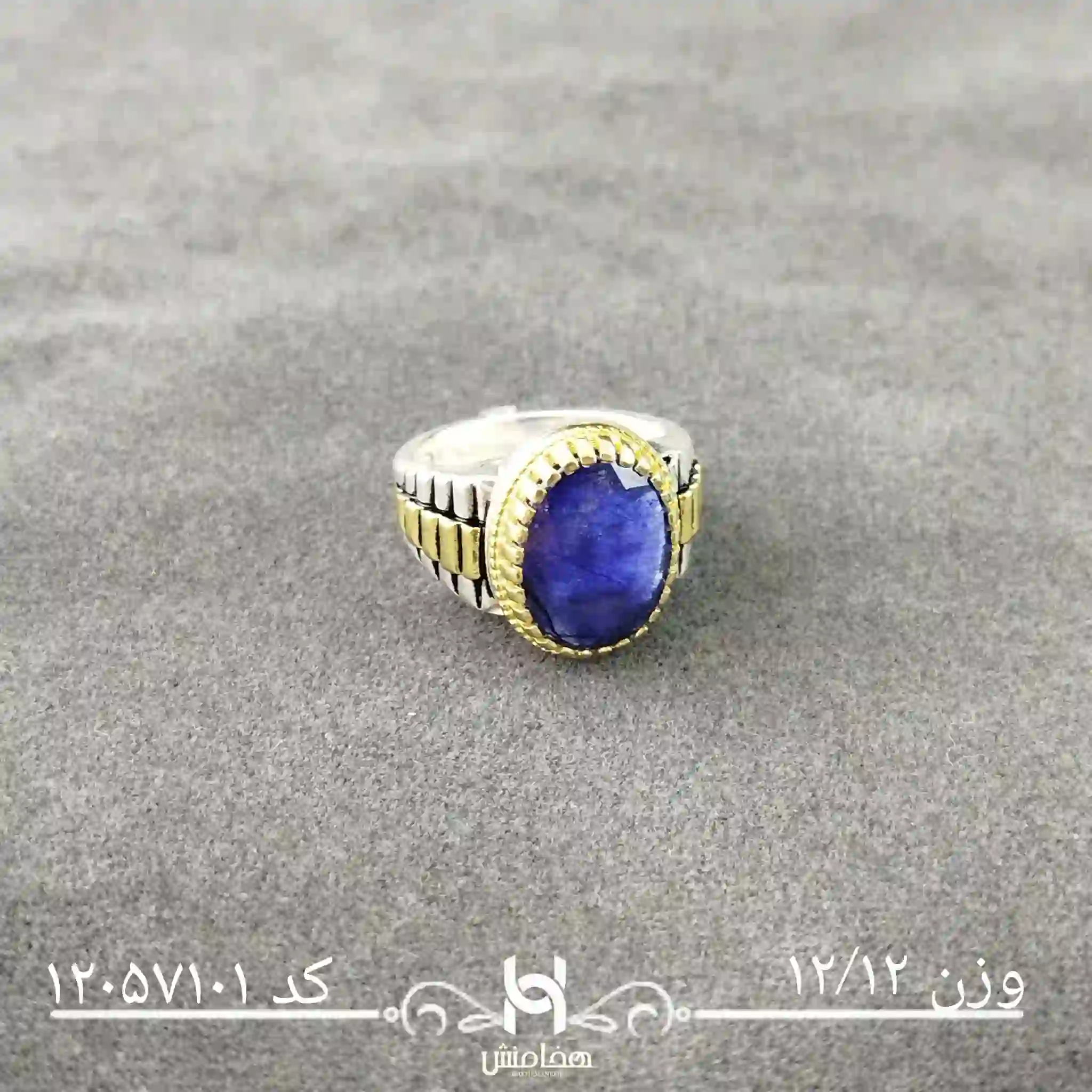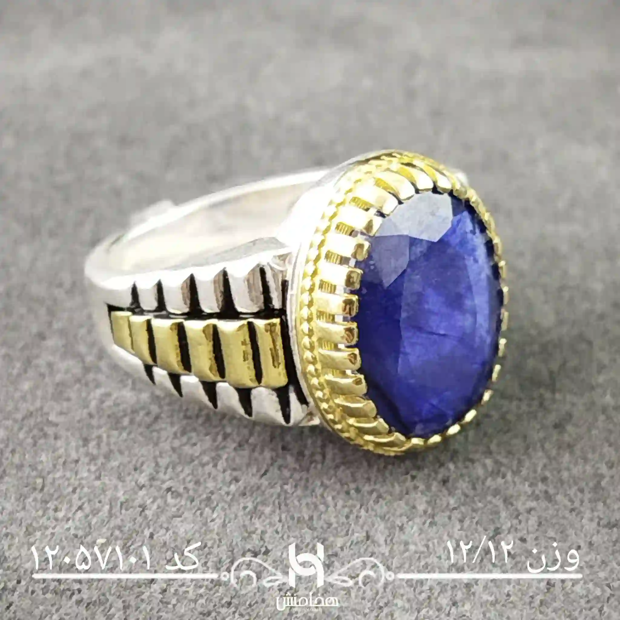 انگشتر نقره مردانه یاقوت کبود رویال دورنگ کد 12057101