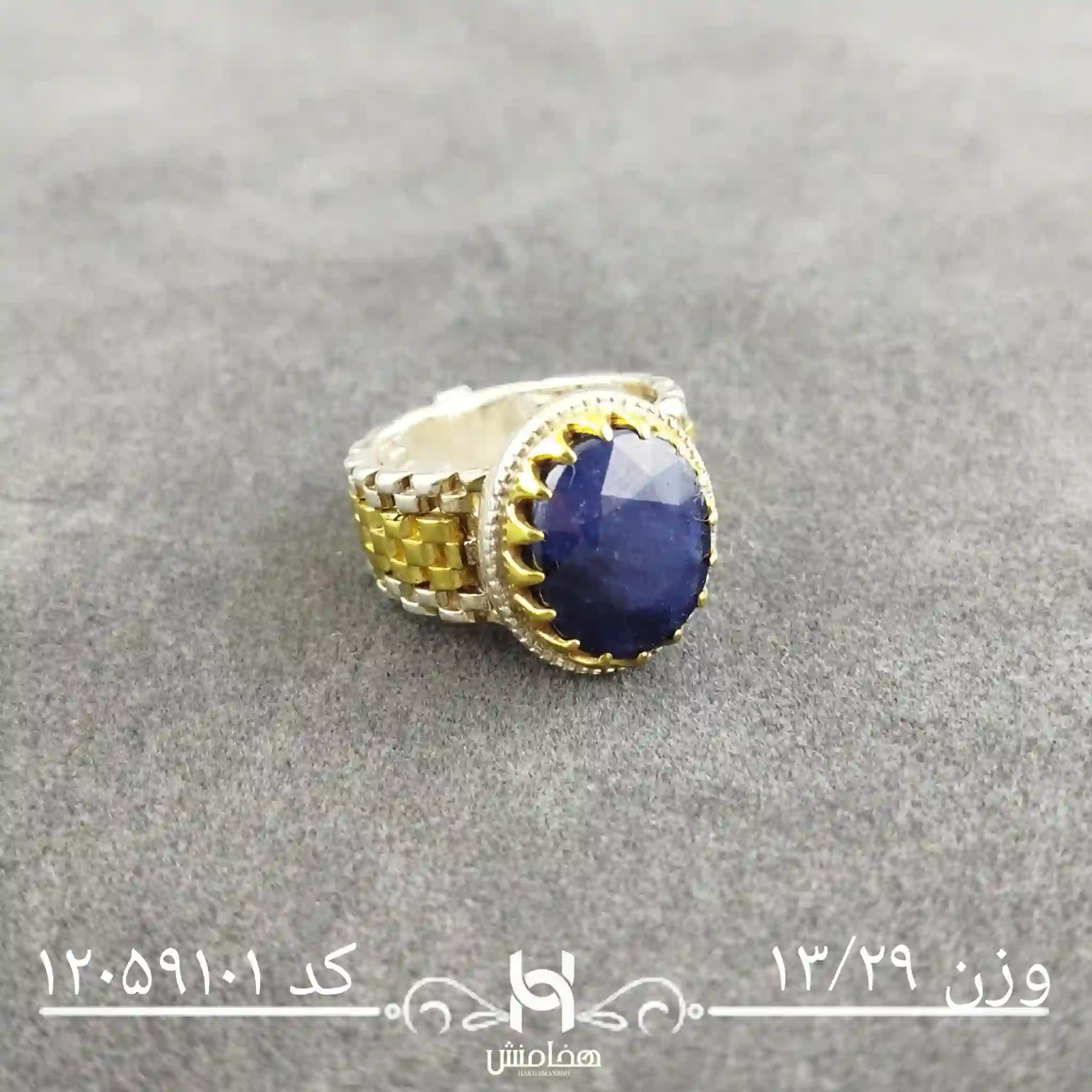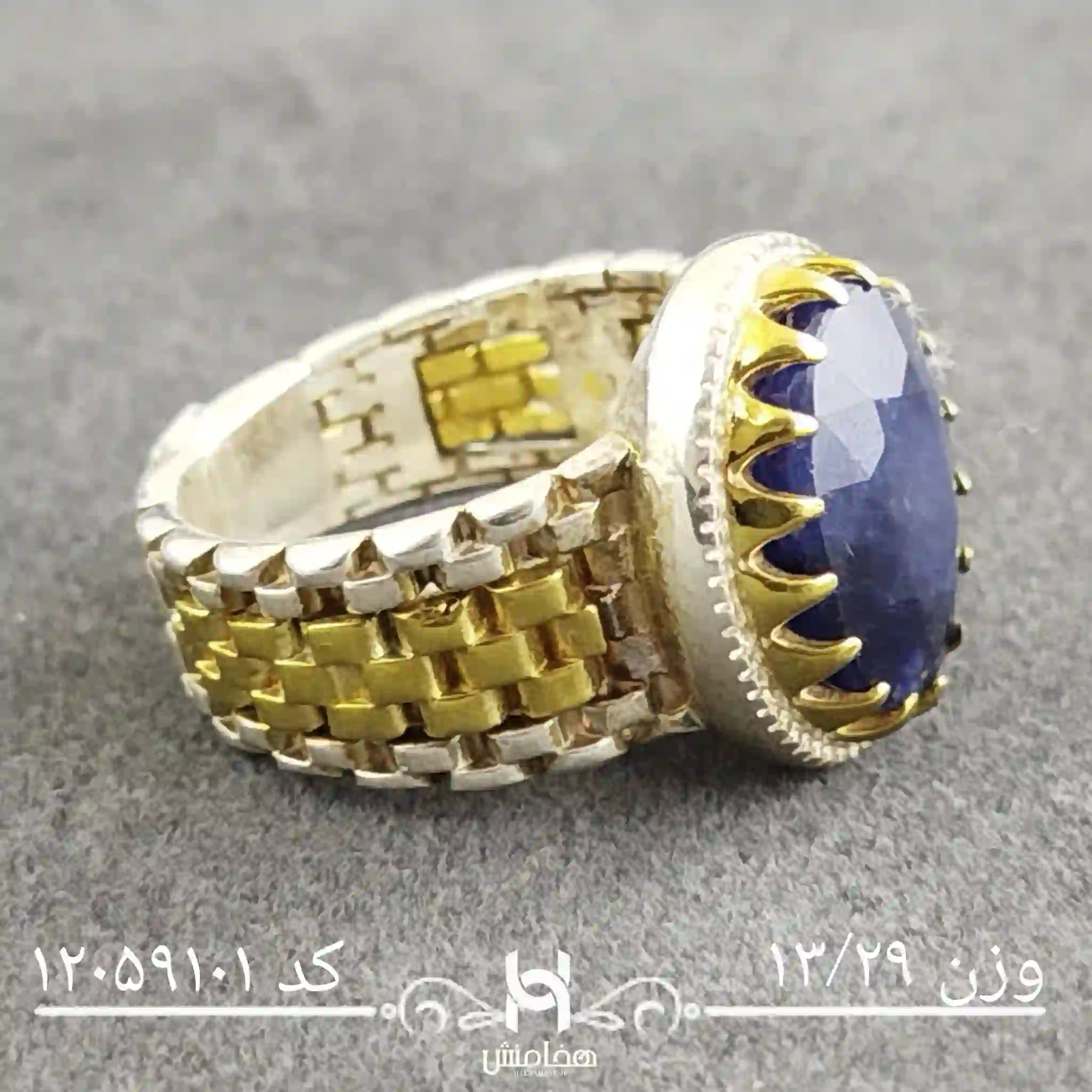 انگشتر نقره مردانه یاقوت کبود رویال دورنگ کد 12059101