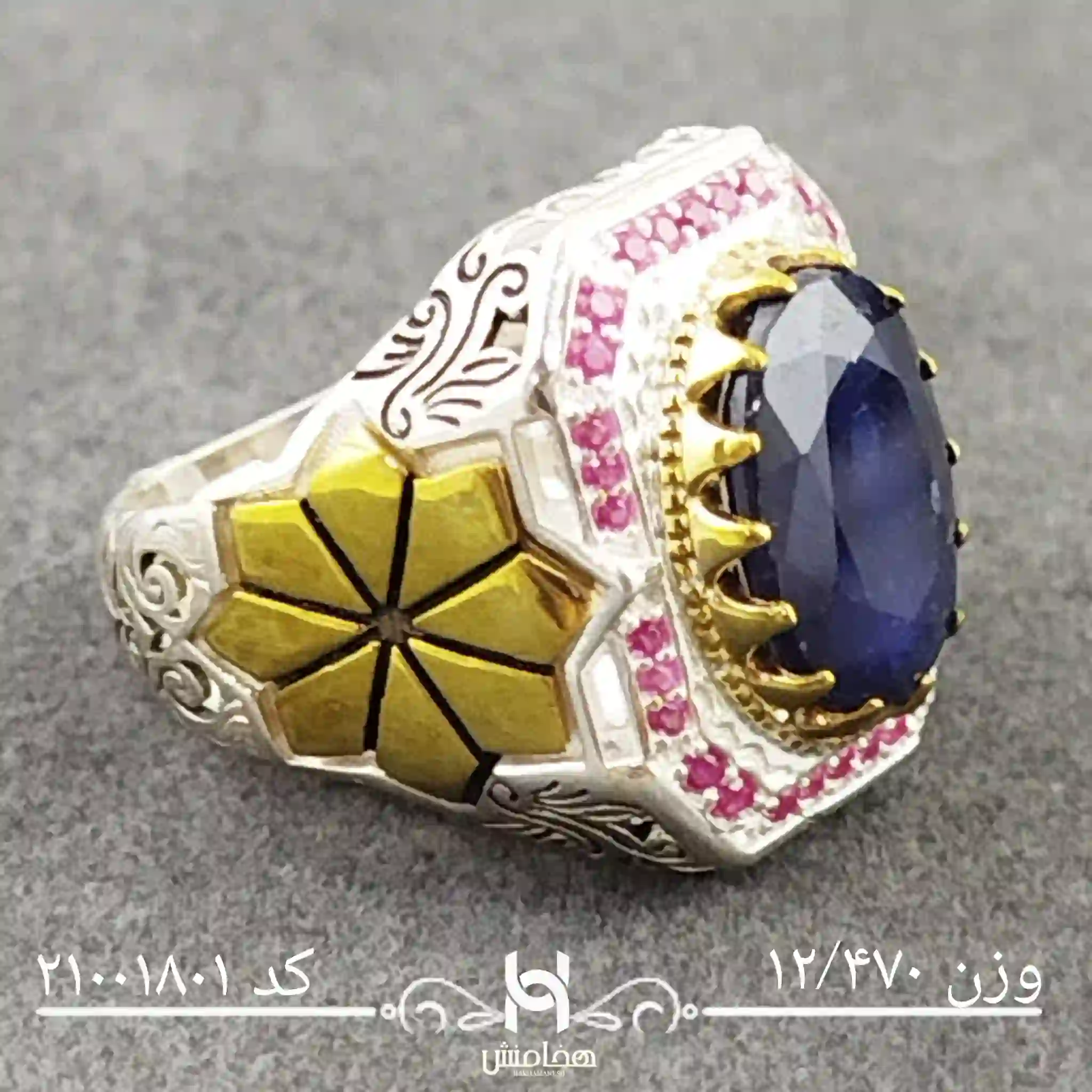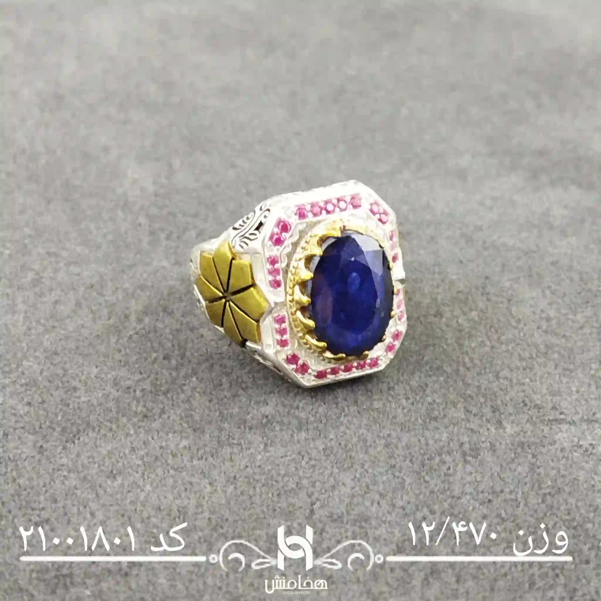 انگشتر نقره مردانه یاقوت کبود رویال دورنگ با نقره عیار استاندارد 925تولید شرکت هخامنش میباشد. انگشتر نقره مردانه یاقوت کبود رویال دورنگ با سنگ طبیعی یاقوت کبود خاص و چشم نواز بوده و توجه هر بیننده ای را جلب میکند.