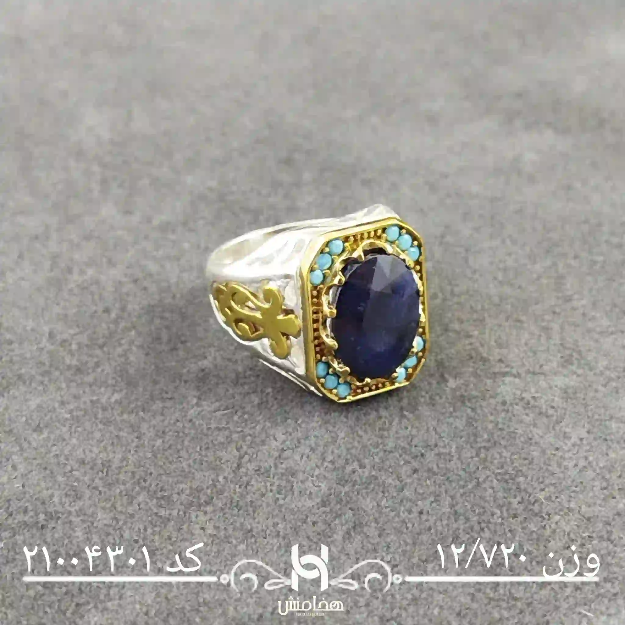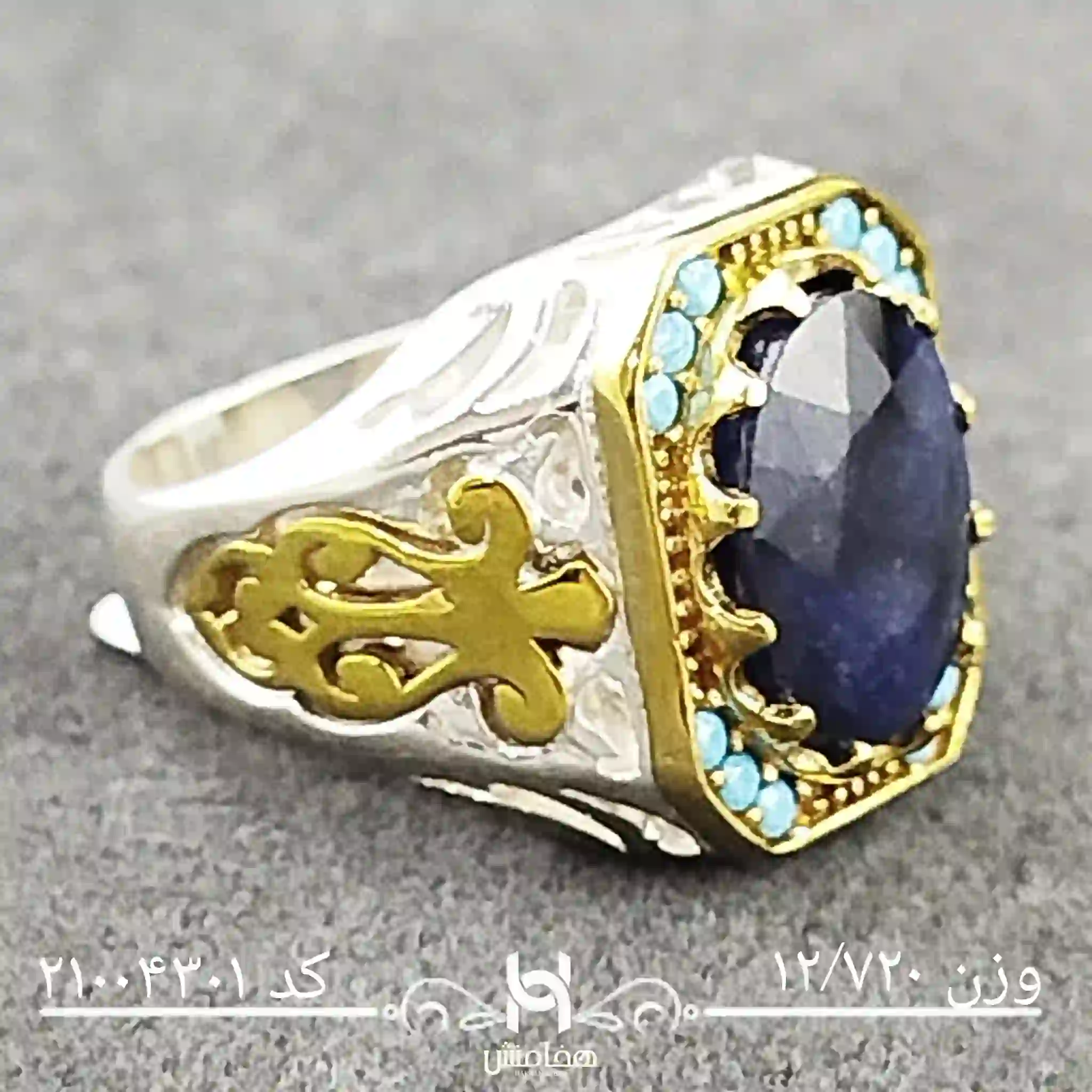 انگشتر نقره مردانه یاقوت کبود رویال دورنگ کد 21004301