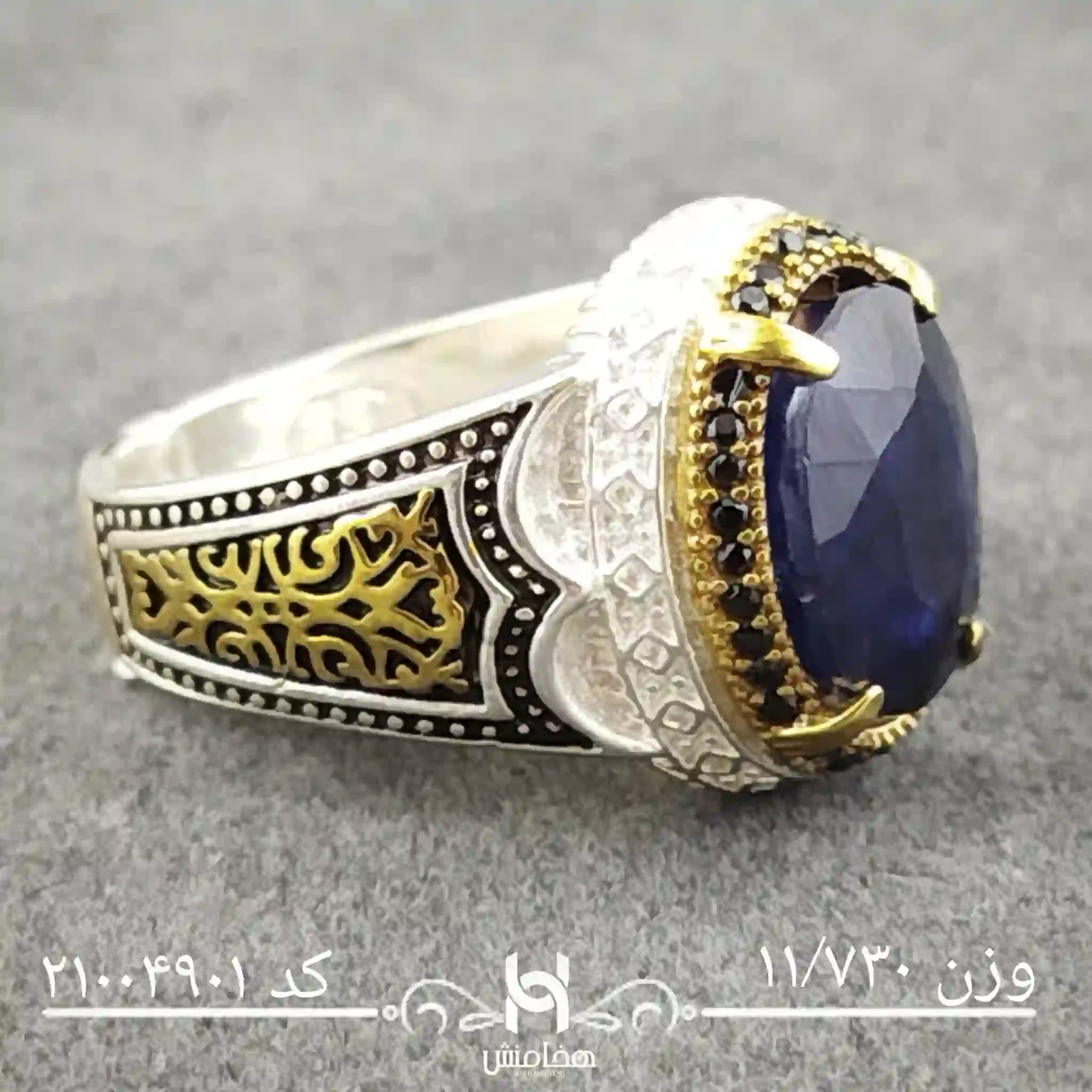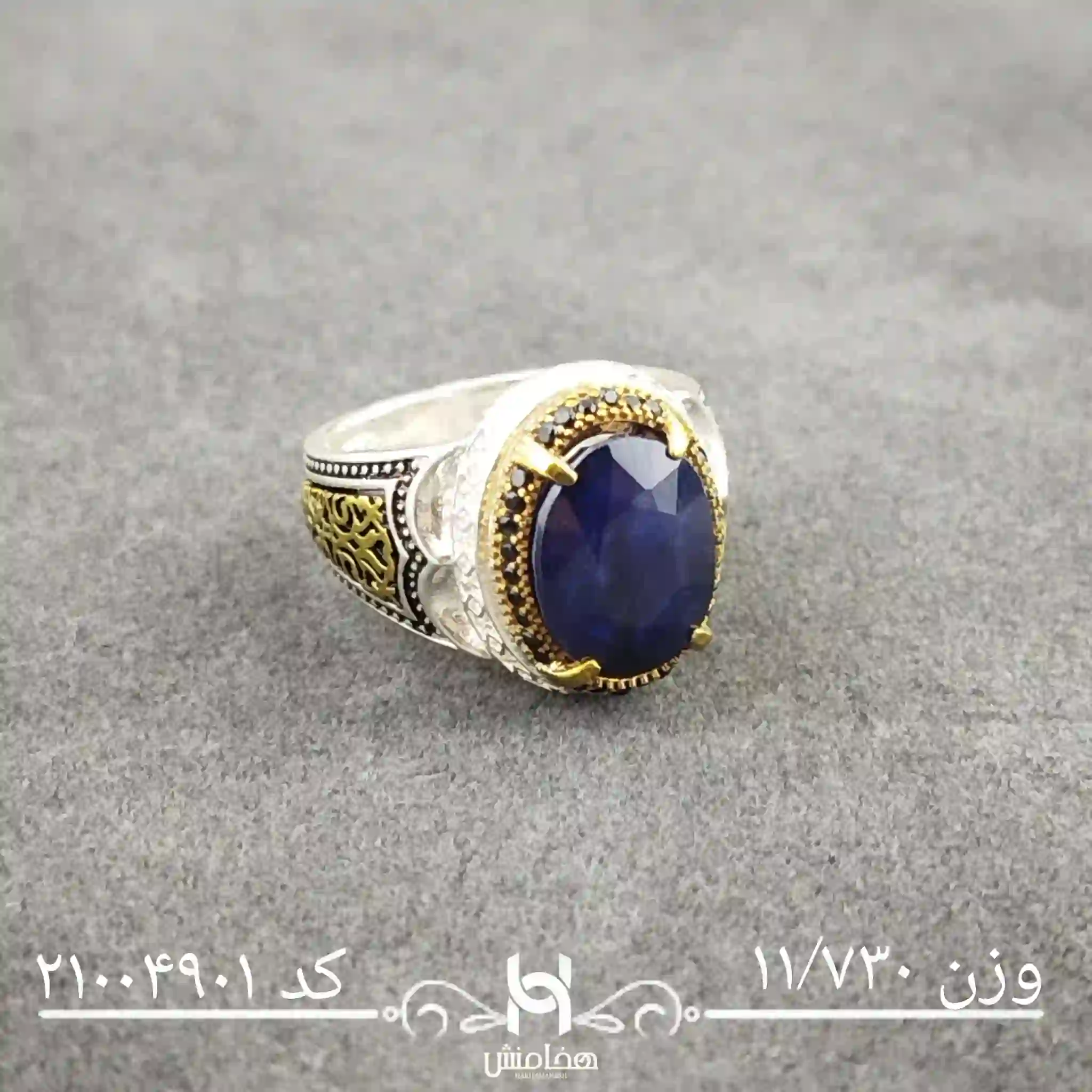 انگشتر نقره مردانه یاقوت کبود رویال دورنگ کد 21004901
