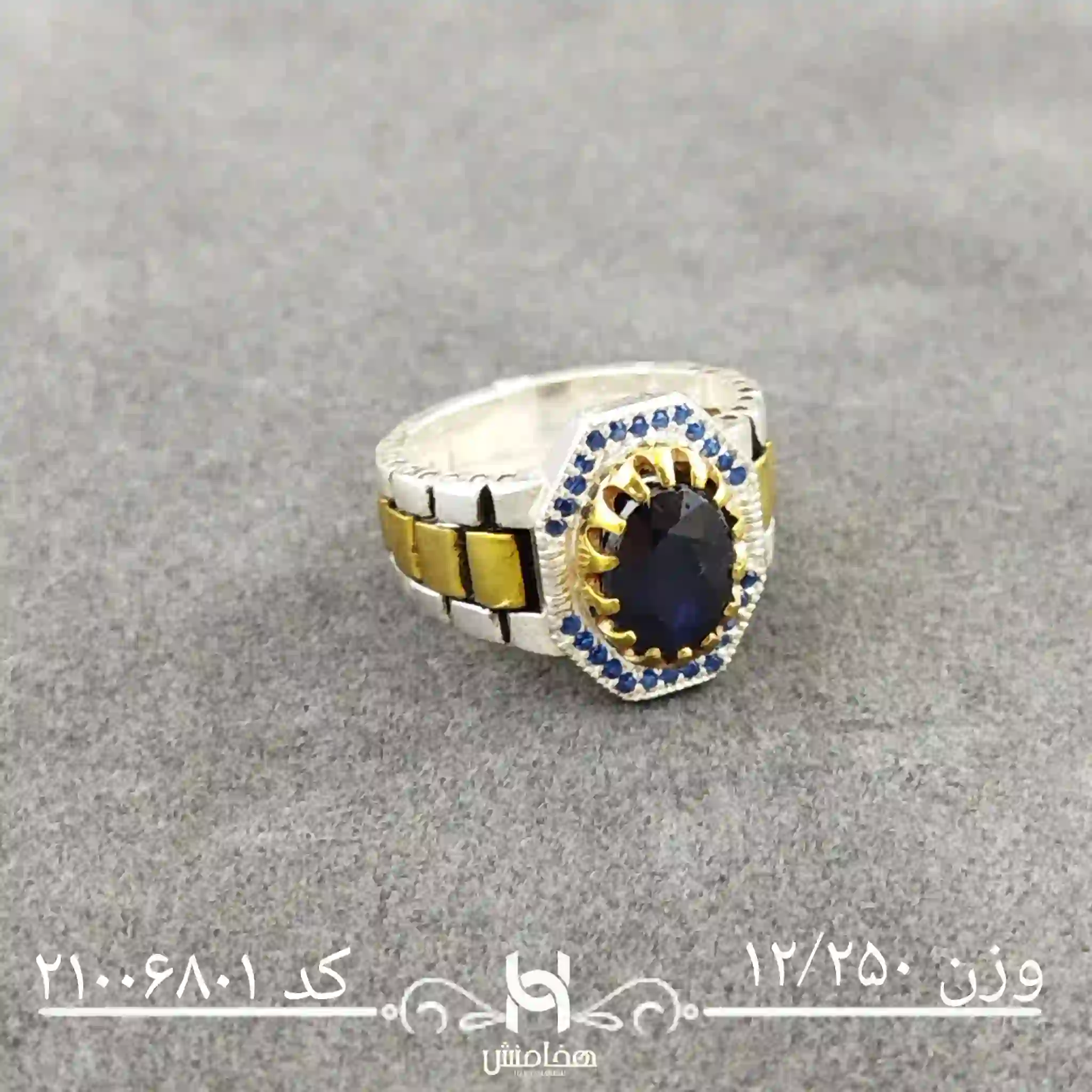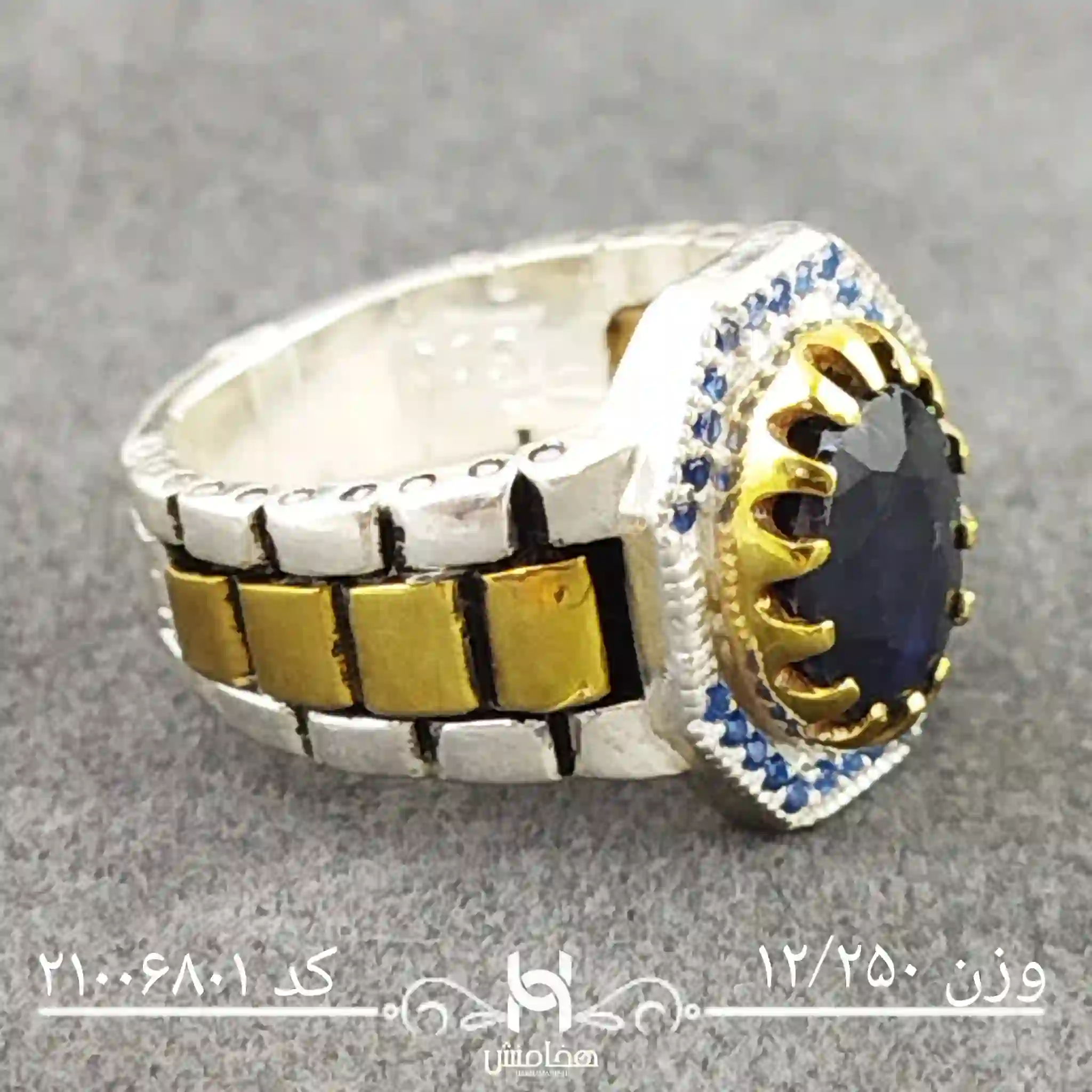 انگشتر نقره مردانه یاقوت کبود رویال دورنگ کد 21006801