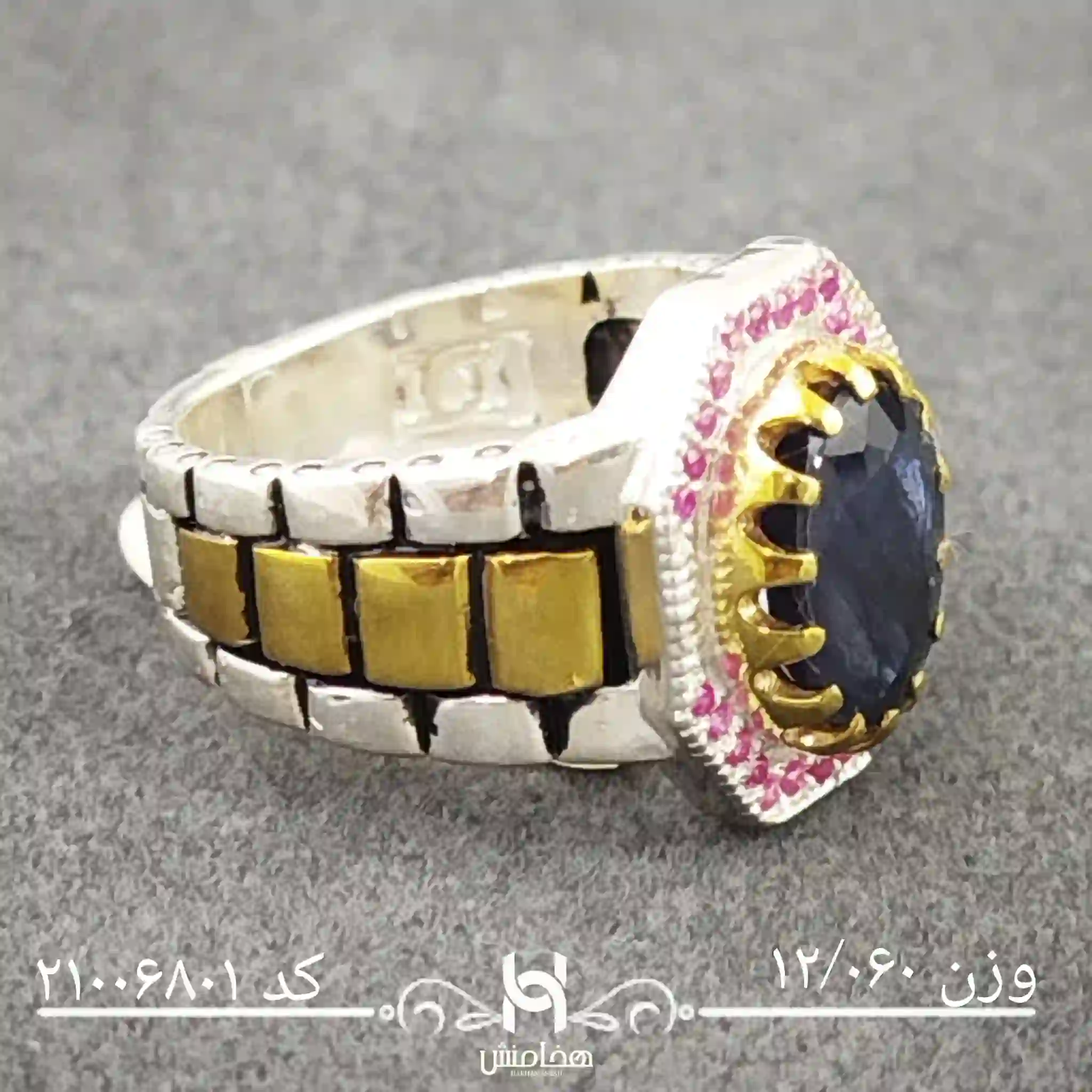 انگشتر نقره مردانه یاقوت کبود رویال دورنگ با نقره عیار استاندارد 925تولید شرکت هخامنش میباشد. انگشتر نقره مردانه یاقوت کبود رویال دورنگ با سنگ طبیعی یاقوت کبود خاص و چشم نواز بوده و توجه هر بیننده ای را جلب میکند.