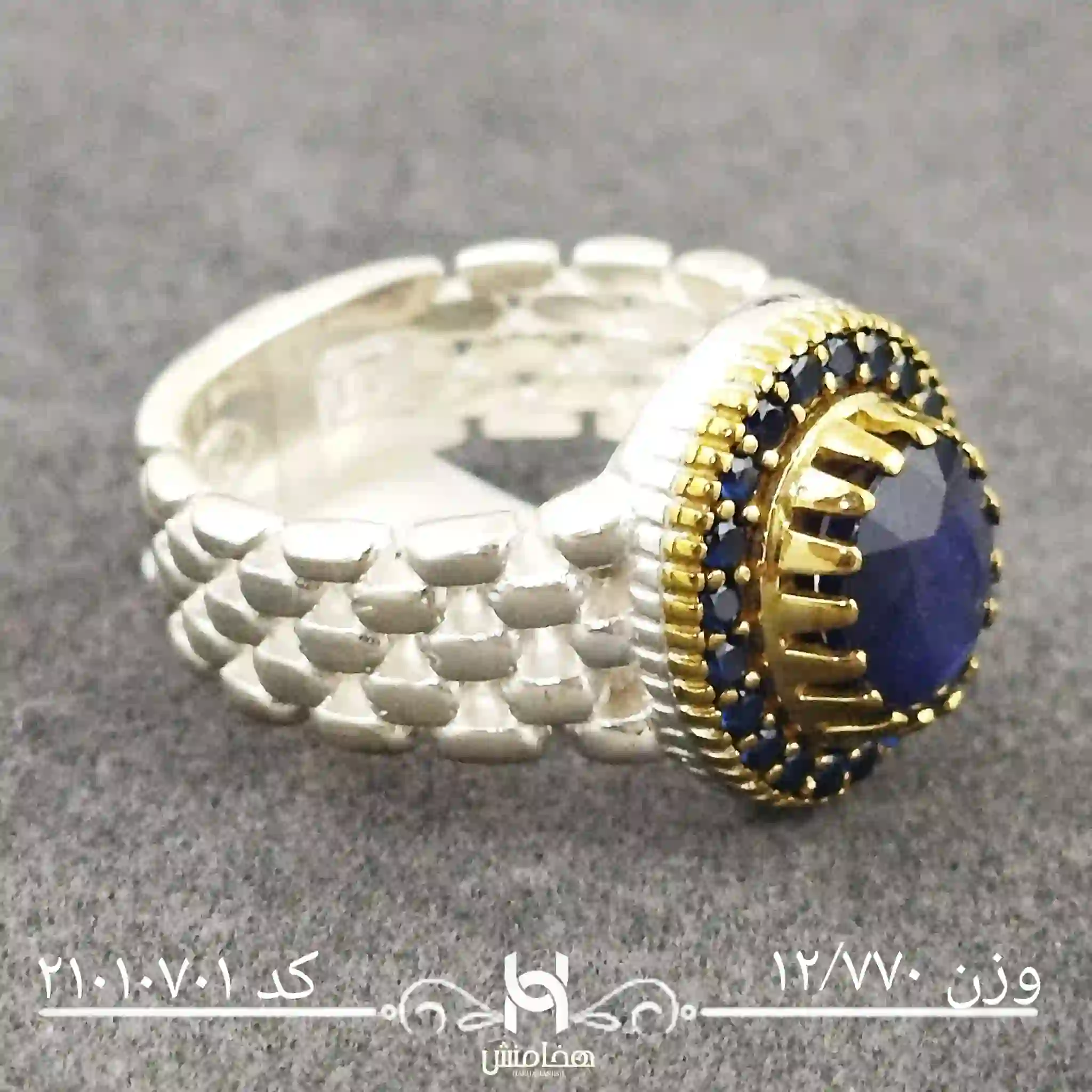 انگشتر نقره مردانه یاقوت کبود رویال دورنگ کد 21010701