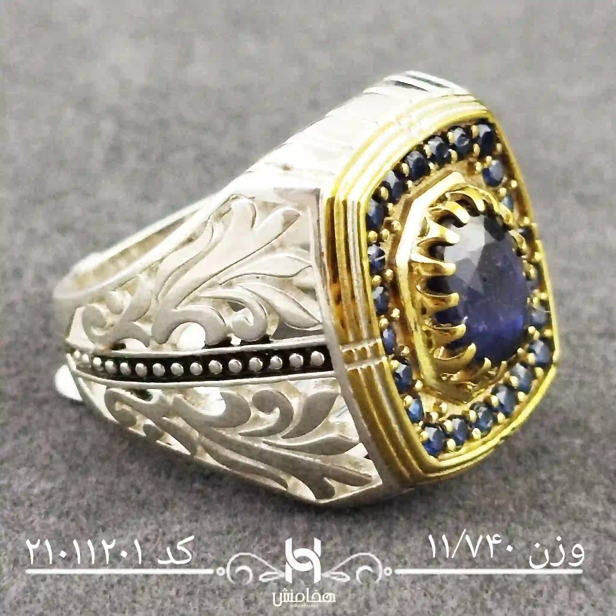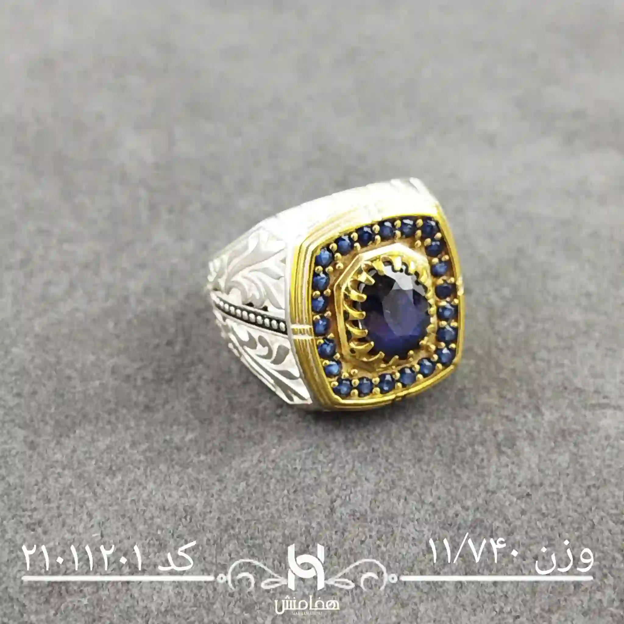 انگشتر نقره مردانه یاقوت کبود رویال دورنگ کد 21011201