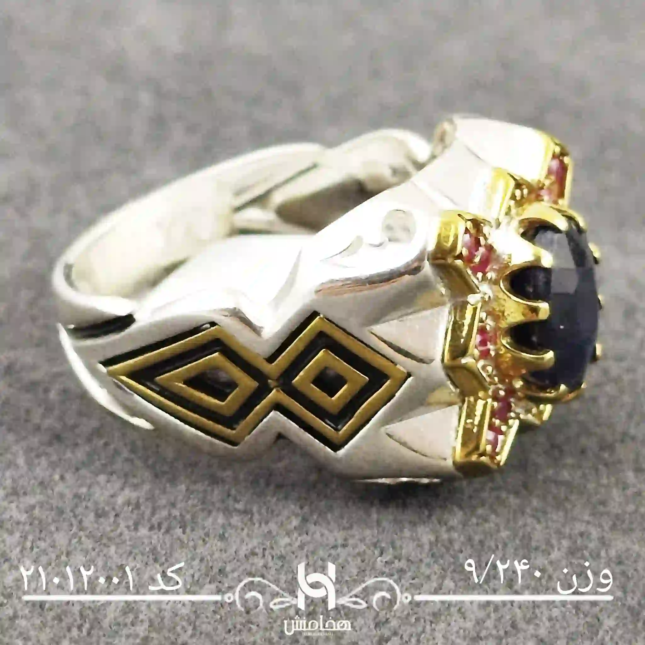 انگشتر نقره مردانه یاقوت کبود رویال دورنگ با نقره عیار استاندارد 925تولید شرکت هخامنش میباشد. انگشتر نقره مردانه یاقوت کبود رویال دورنگ با سنگ طبیعی یاقوت کبود خاص و چشم نواز بوده و توجه هر بیننده ای را جلب میکند.