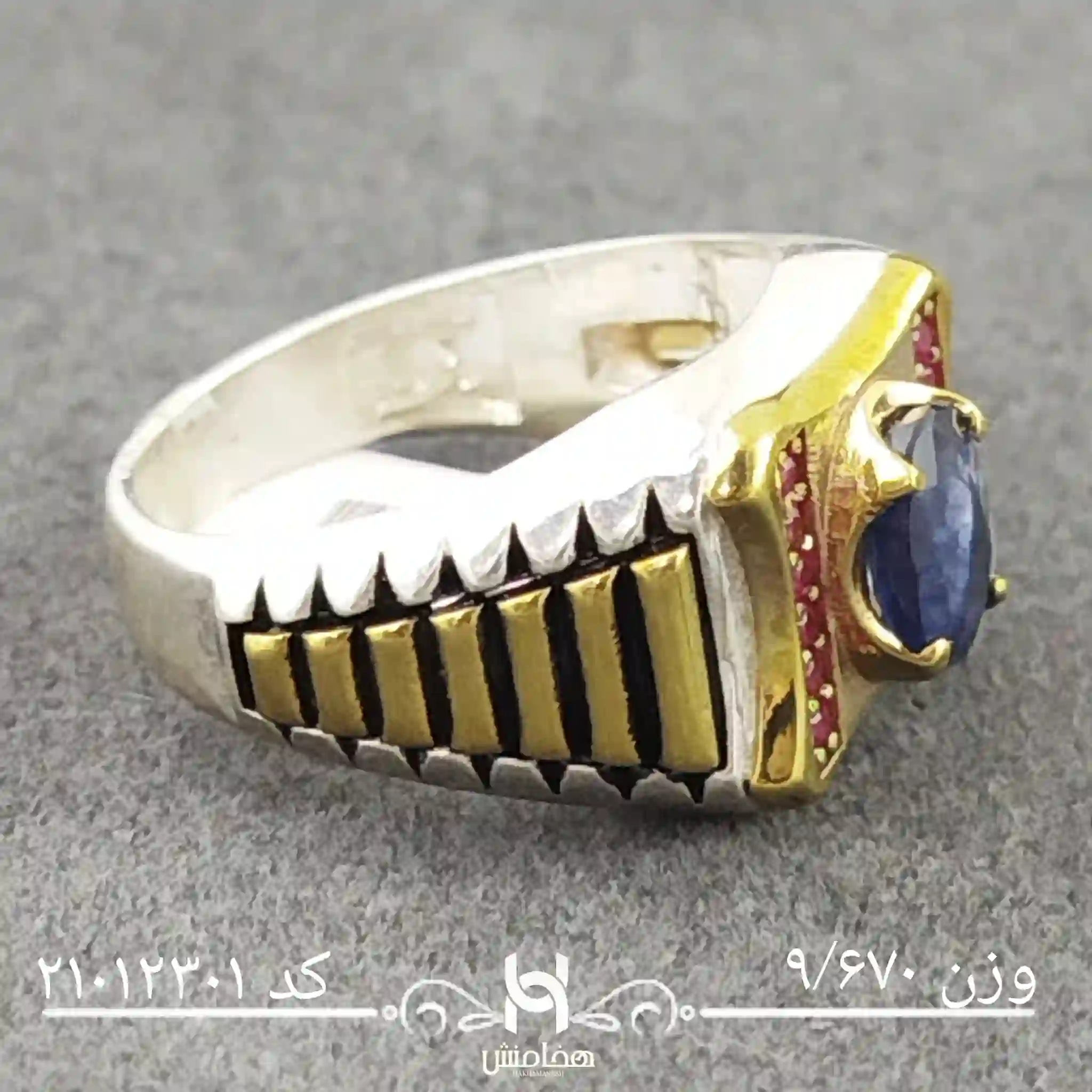 انگشتر نقره مردانه یاقوت کبود رویال دورنگ کد 21012301