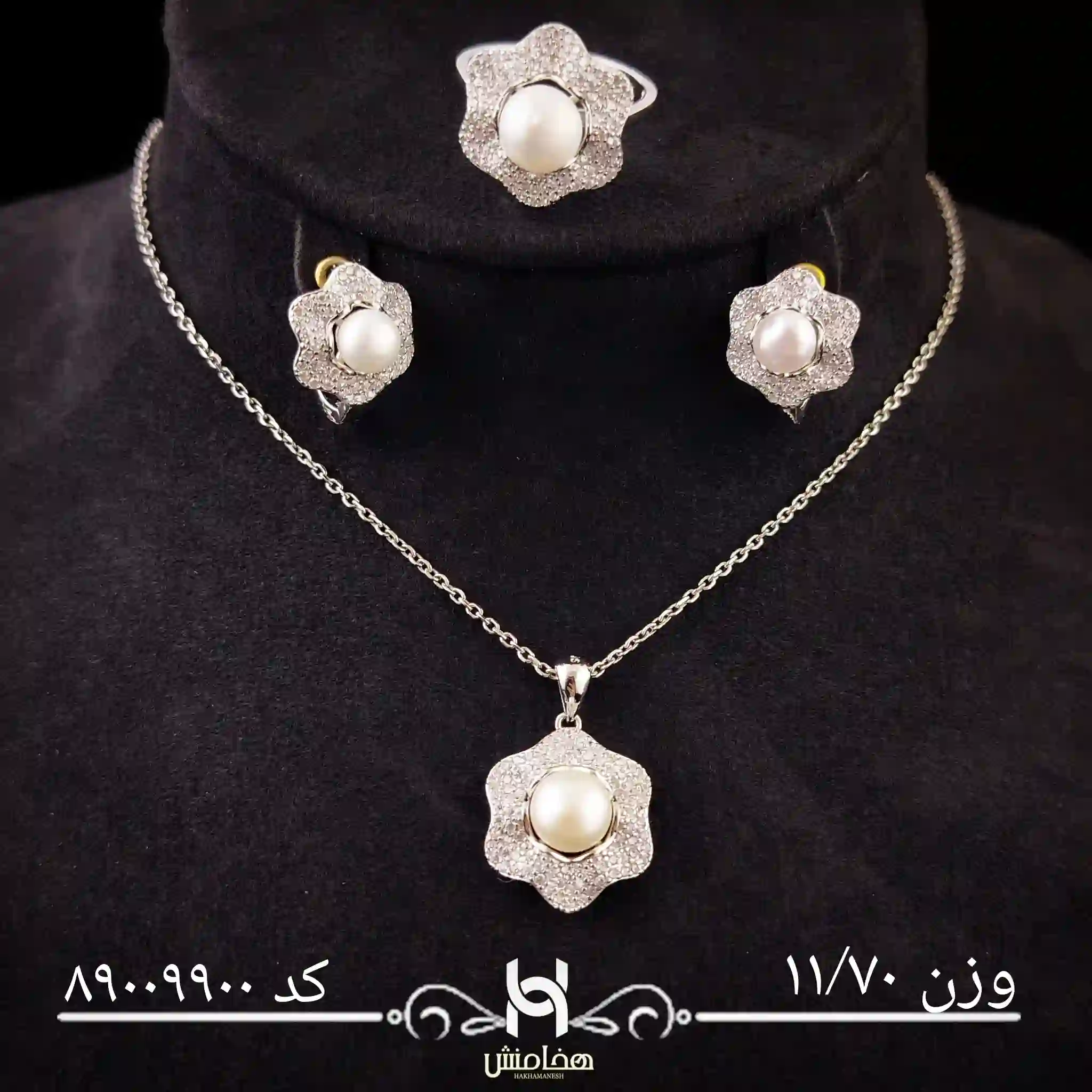 این مجموعه شامل گردنبند پلاک و گوشواره و انگشتر است که با ظرافتی مثال زدنی طراحی شدهاند تا زیبایی طبیعی شما را دوچندان کنند.